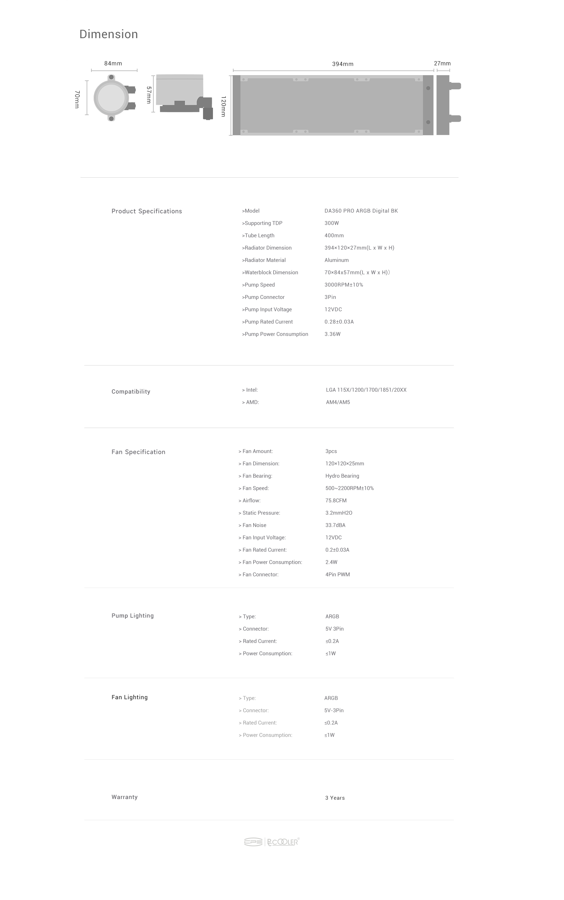 • PCCOOLER CPS DA360 PRO ARGB Digital with Digital Monitor