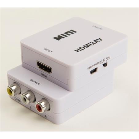 HDMI to AV Converter: Input--HDMI signal, output--1080P composite CVBS Video + Audio R/L signals
