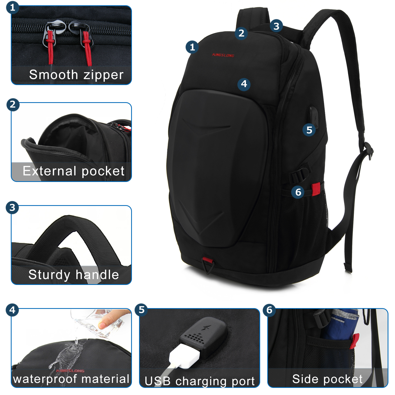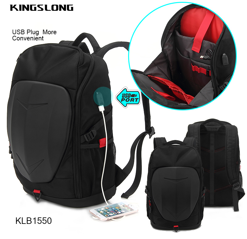 KINGSLONG 17.3" Gaming Backpack with USB Charging Port, Black (KLB1550BK)