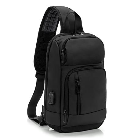 KINGSLONG 11" Waterproof Shoulder Backpack, USB Charging Port, Black