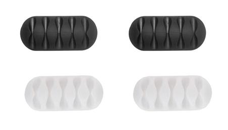 iCAN Adhesive Desktop 5-slot Cable Fixer, 4pcs, Black & White