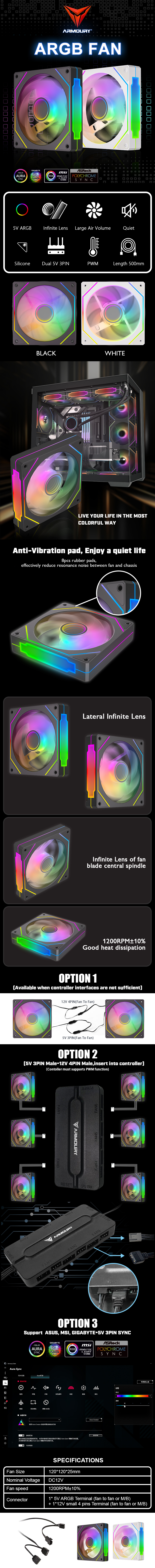 Armoury Block III ARGB PWM Fan, Daisy Chained PWM, White