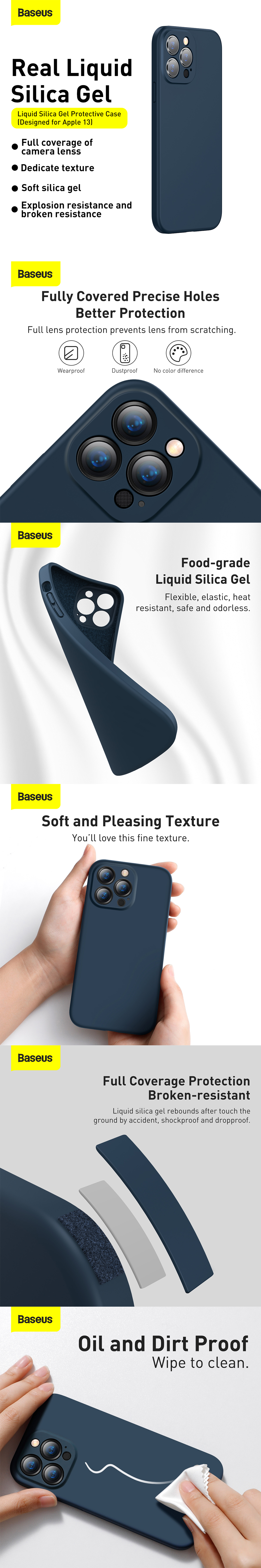 • Baseus Protective Case For iPhone 13 Pro 6.1", Liquid Silica Gel, Blue
