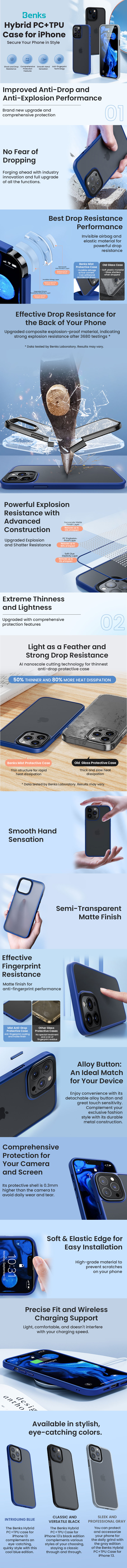 • Benks Hybrid PC+TPU case for iPhone 13 6.1" Pro(Open Box)