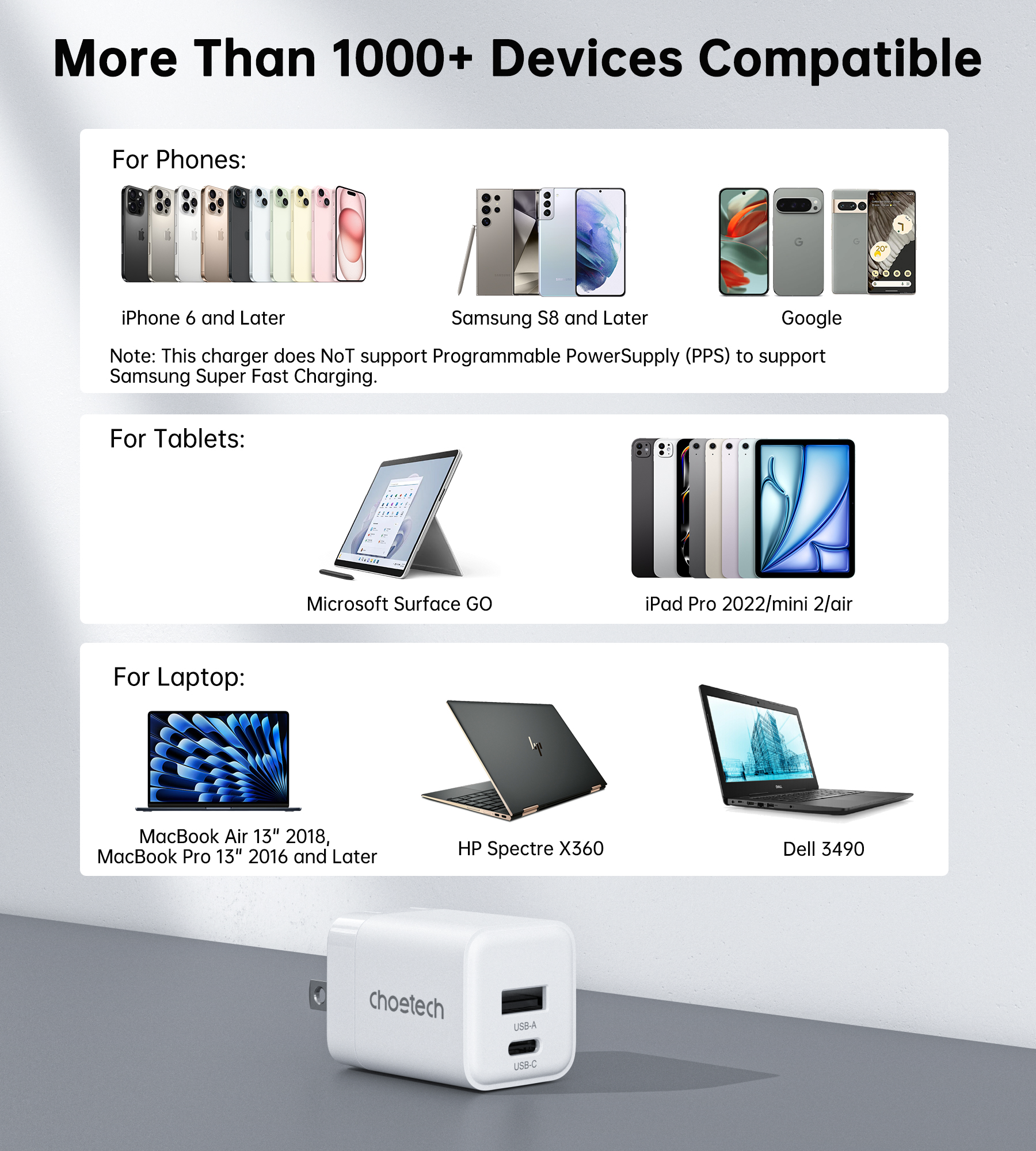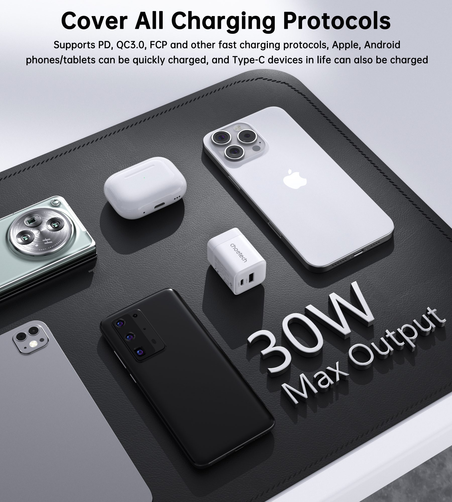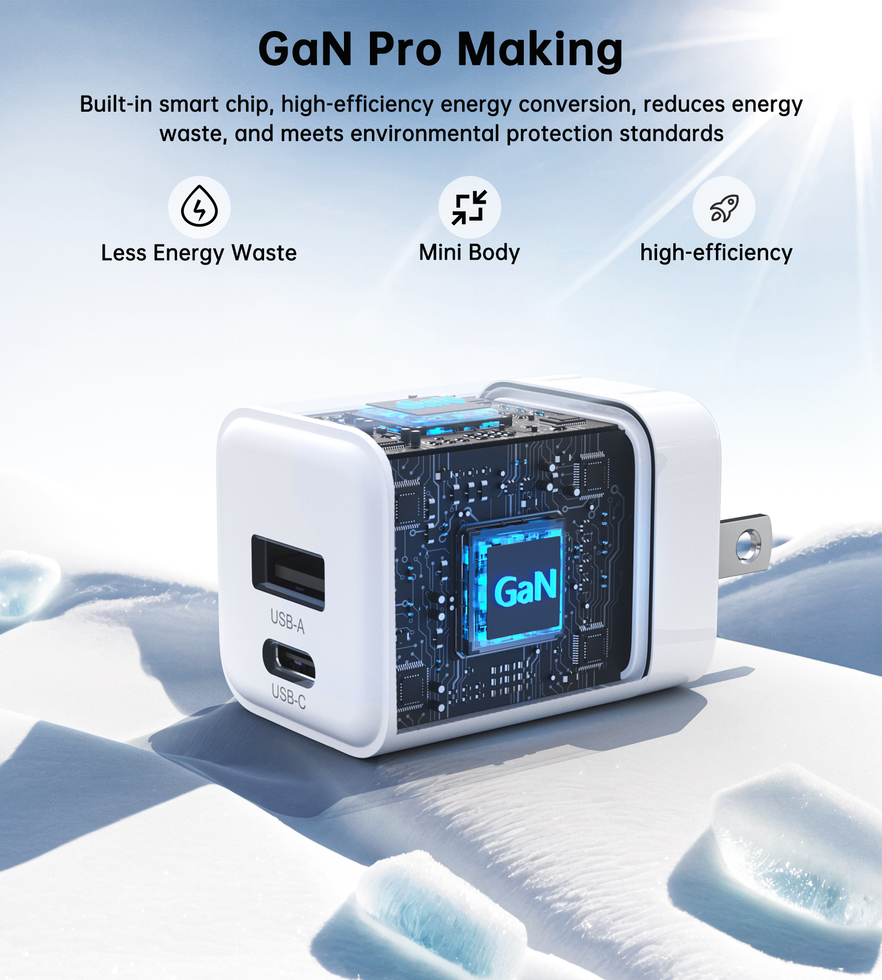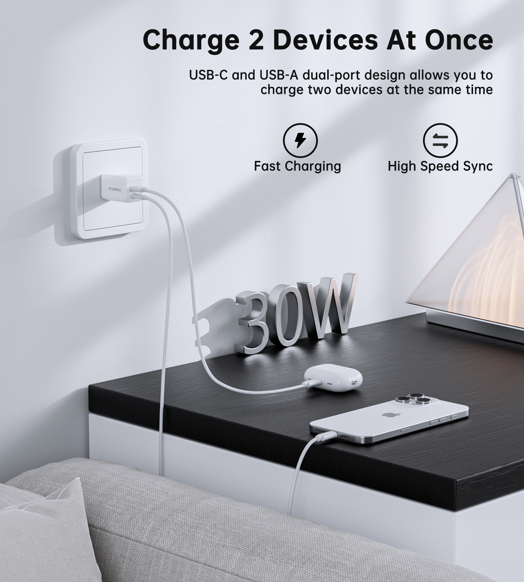 • Choetech NexGen PD 30W 2-Port GaN Wall Charger,White