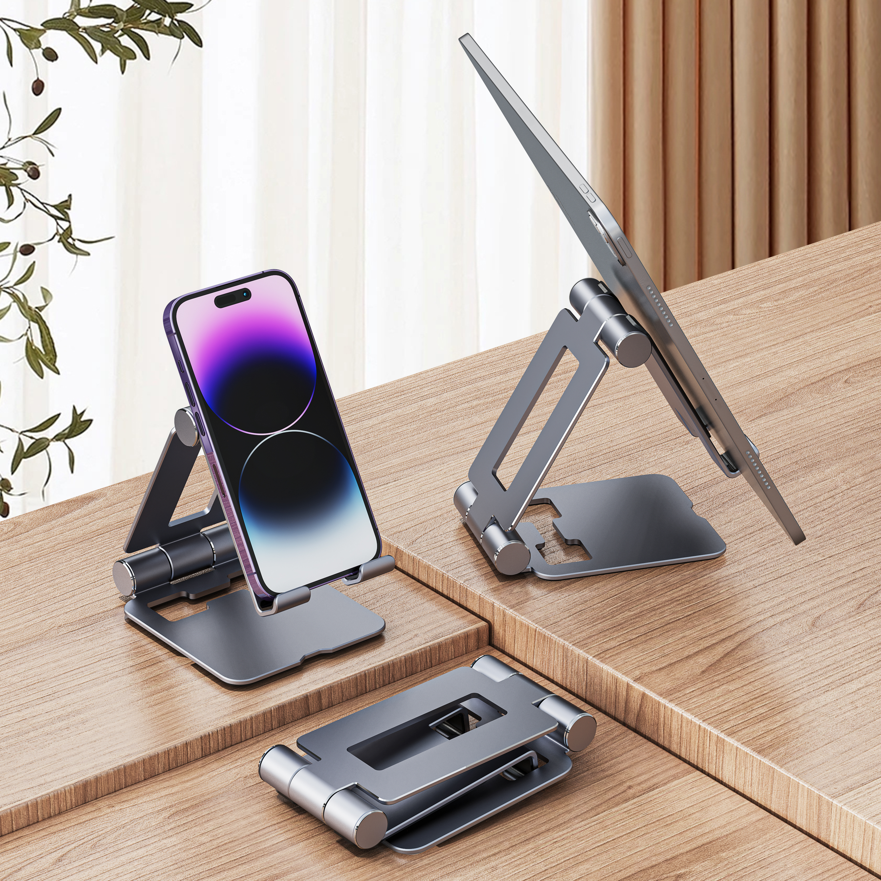 iCAN Multi-angle Foldable Tablet Stand, Compatible with All iPhones and Tablets, Space Grey