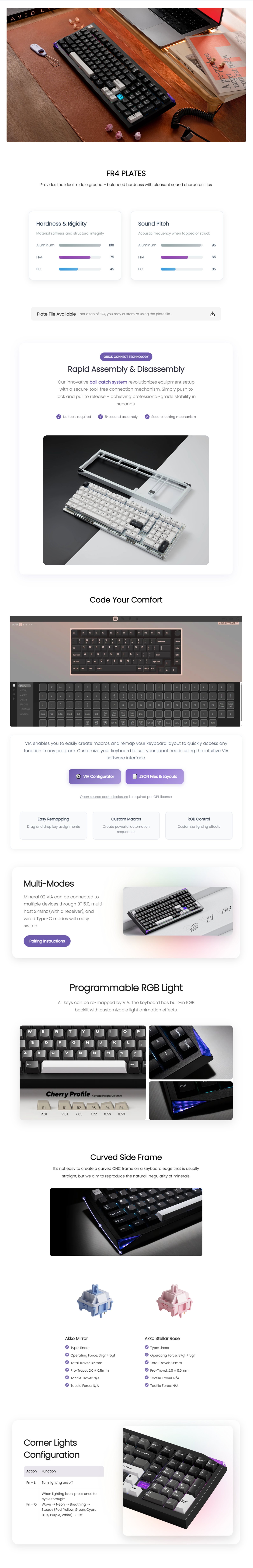 Akko Mineral02 Customizable Tri-Mode 100% Mechanical Keyboard, Aluminum CNC Case w/ Ergonomically Curved Side Profile, Cherry Profile PBT Double-Shot Keycaps, Translucent Acrylic Corner w/ Synchronized RGB Patterns, Ball Catch System / Rapid Assembly; QMK/VIA (Source Code); 8000mAh Battery