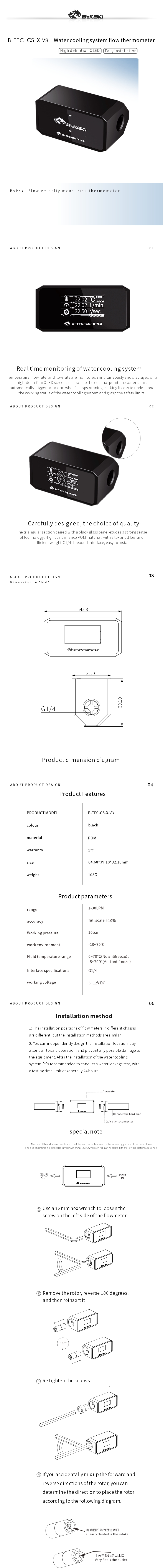 • Bykski Inline Flow Meter and Thermometer Safety Module w/ OLED Display
