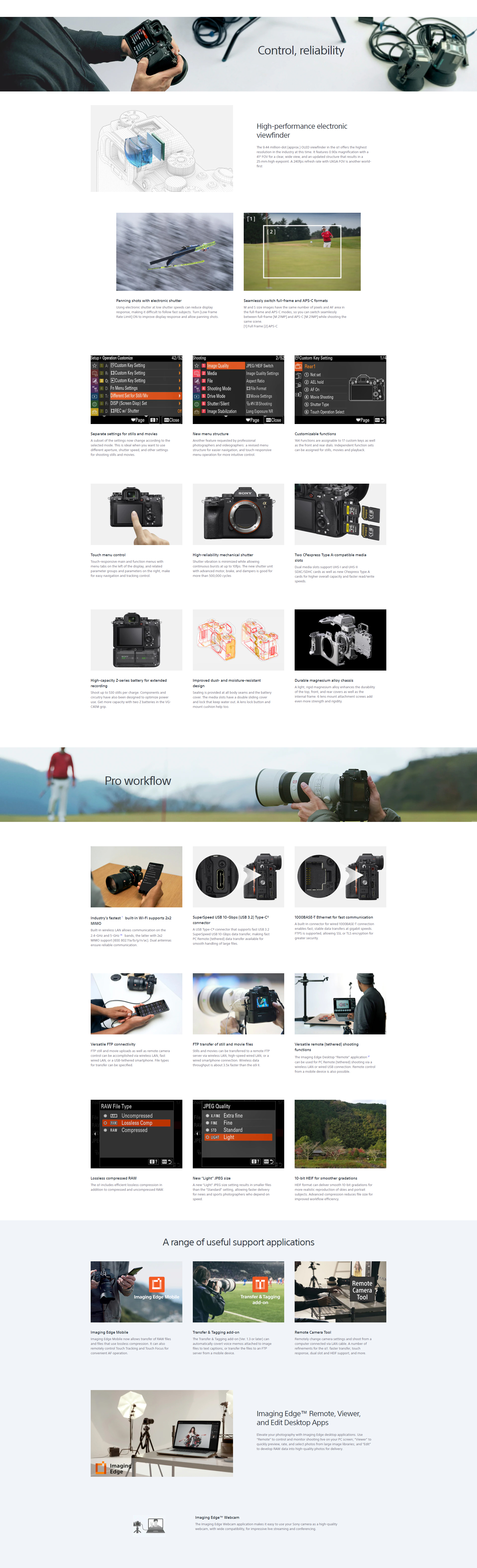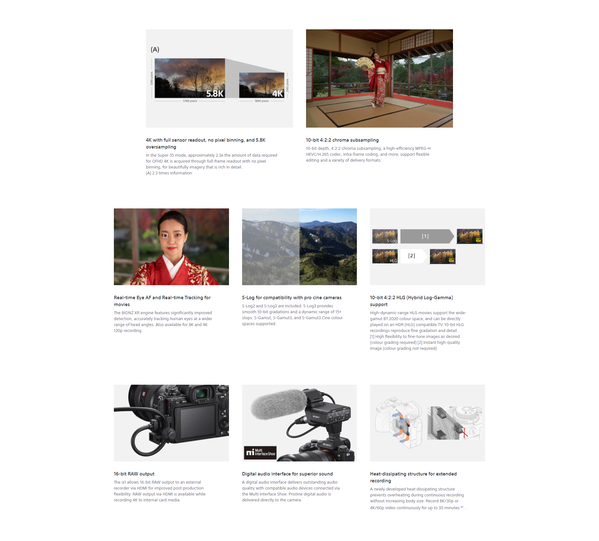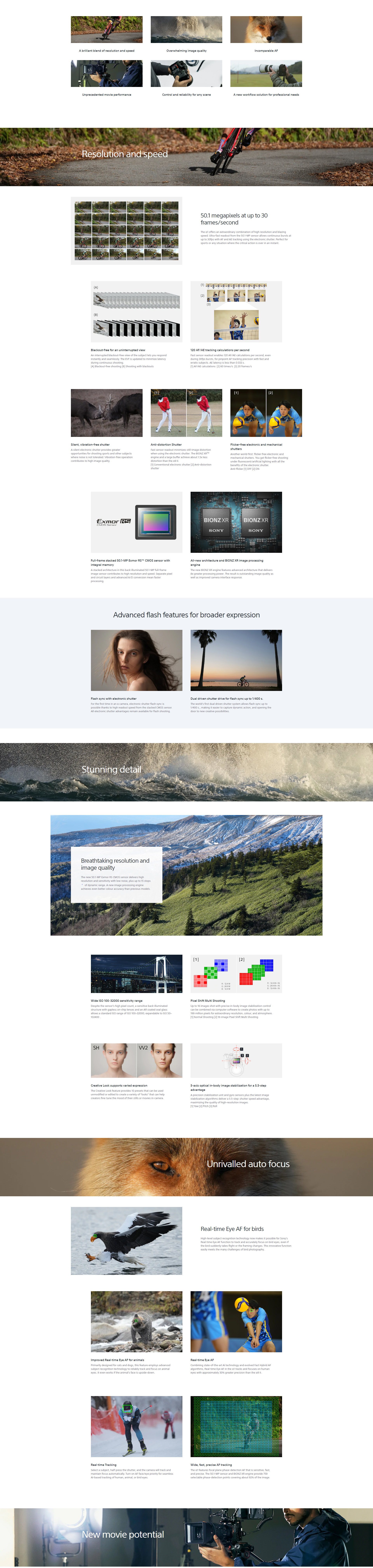 The new 50.1-MP Exmor RS CMOS sensor delivers high resolution and sensitivity with low noise, plus up to 15 stops of dynamic range. A new image processing engine achieves even better color accuracy than previous models.
