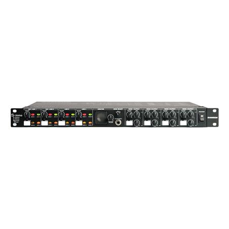 The S-Zone gives system installers all the features they need to control up to four zones of audio with a compact, single-rack space unit. It features 2 balanced mic and 4 balanced aux/line inputs with a unique front panel control section that allows you to assign any of the four inputs to any of the four zones with just the push of a button. The front panel layout also has input and output volume controls, independent 2-band equalization, and an on board speaker for selectable zone monitoring.