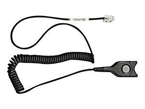 Standard headset connection cable with standard microphone sensitivity. EasyDisconnect to Modular Plug RJ 9, coiled cord, Code 01. For use with all switches / amplifiers, as well as for direct connection to most of the phones.