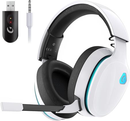 iCAN CT-300-WH Wireless Gaming Headset, Bluetooth 5.3 and 2.4GHz, Noise Cancelling Mic, Stereo Sound