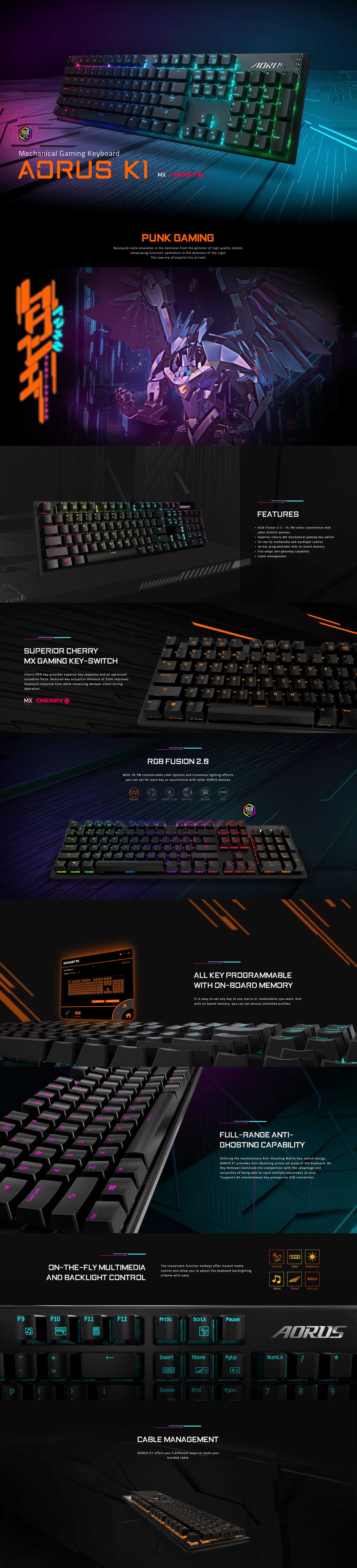 • GIGABYTE AORUS K1 Gaming Keyboard, Cherry MX Red Mechanical Switches,(Open Box)