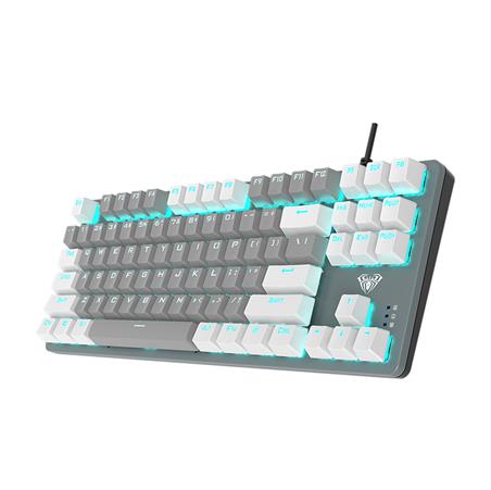Aula F3287 Wired Mechanical Gaming Keyboard with Blue Switches,White&Grey Mixed Color Keycaps,Programmable Macro Keys(Open Box)