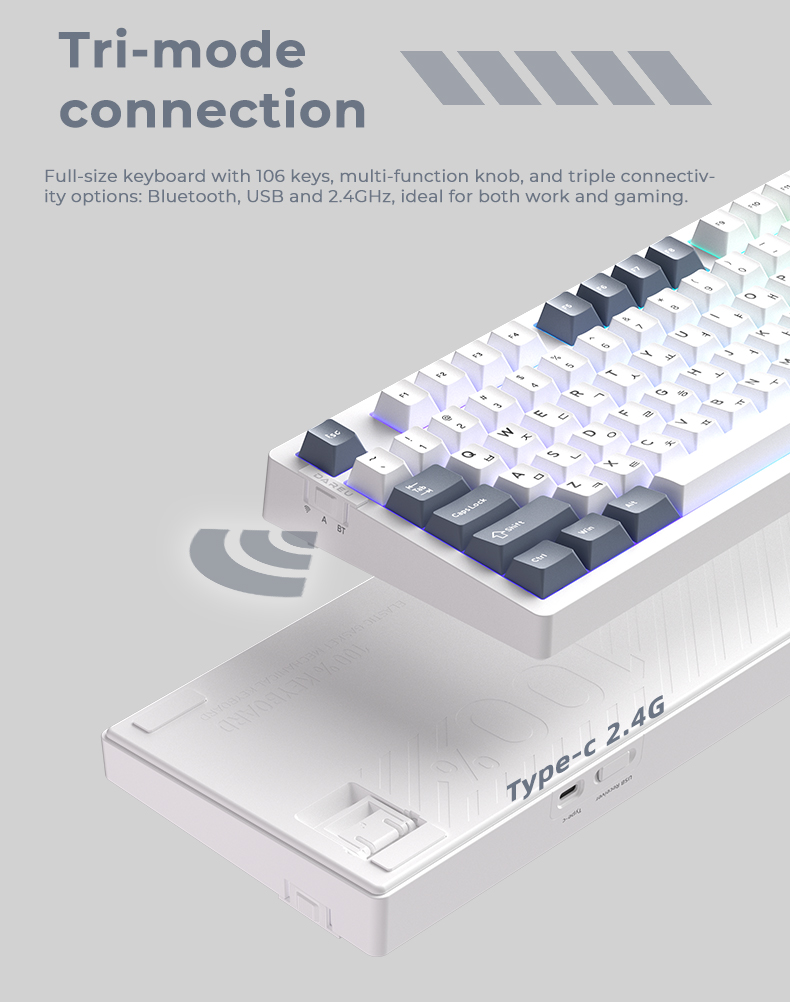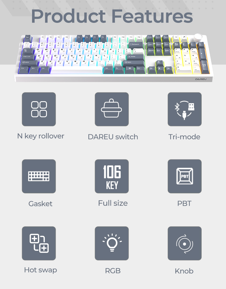 DAREU EK106 Pro Tri-mode 2.4G/BlueTooth/Wired Full Size Gasket Mounted Hot-Swappable RGB Gaming Keyboard with Linear Switch