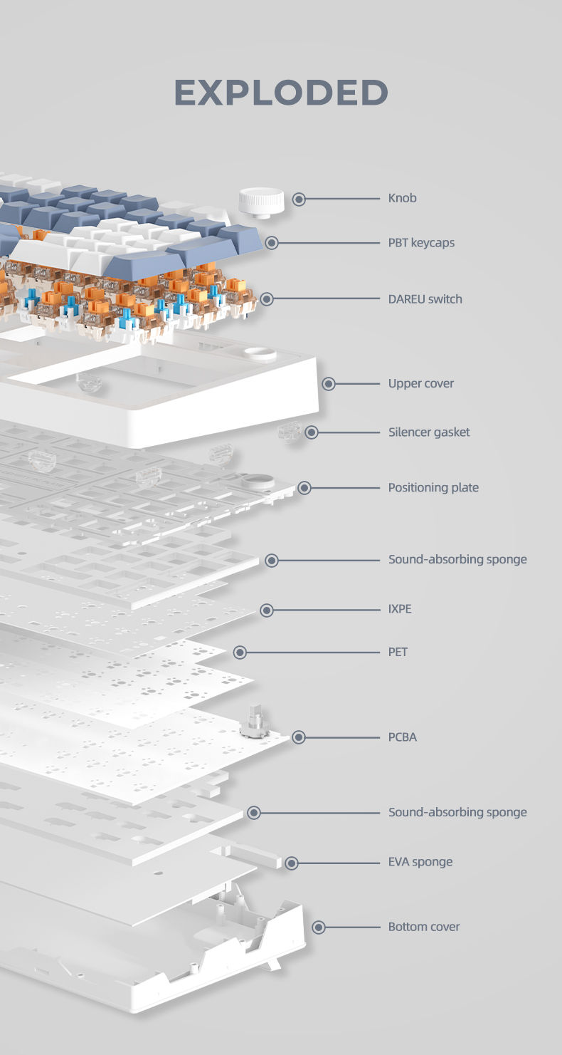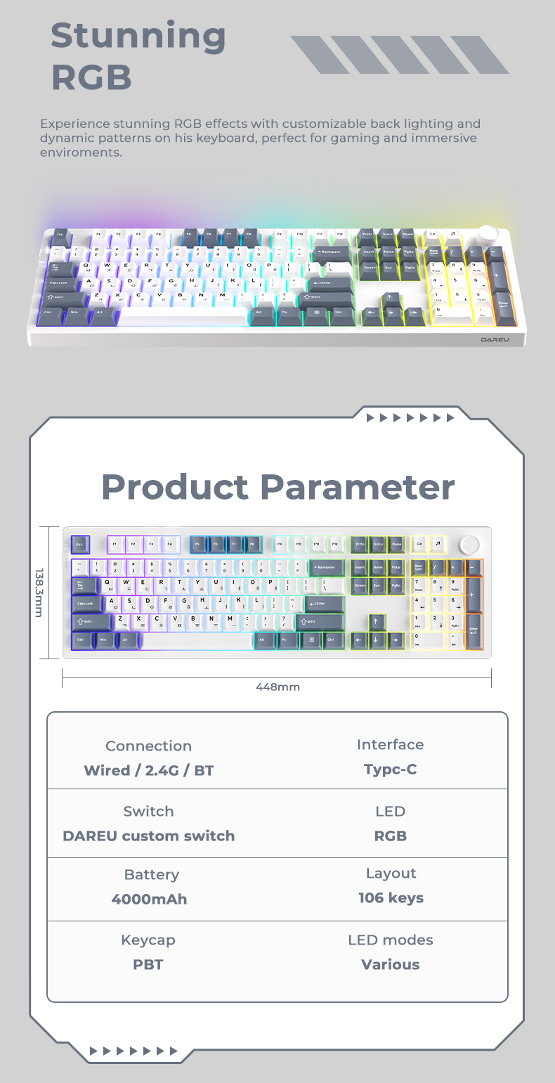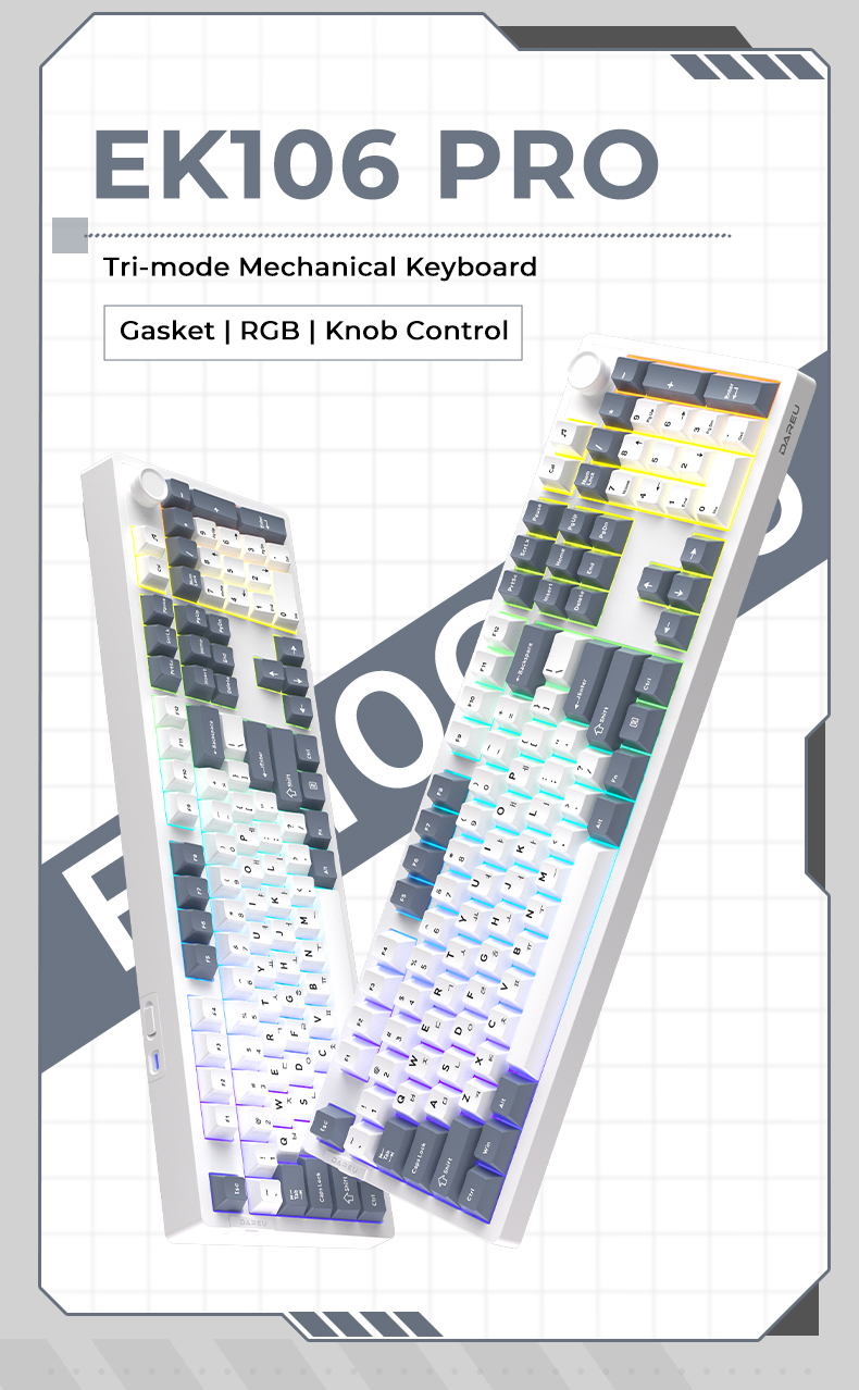 • DAREU EK106 Pro Tri-mode 100% Gasket RGB Gaming Keyboard Linear Switch