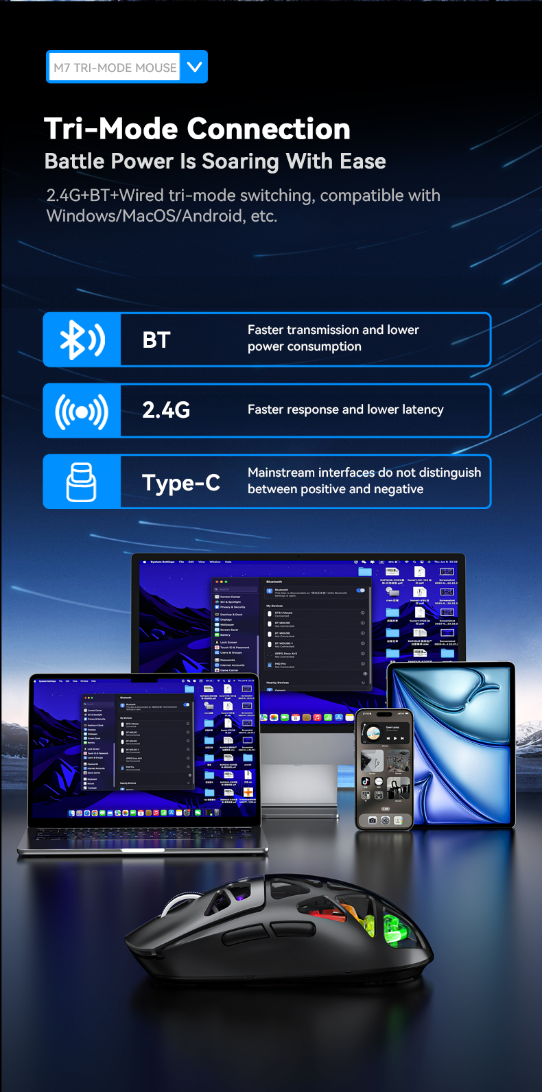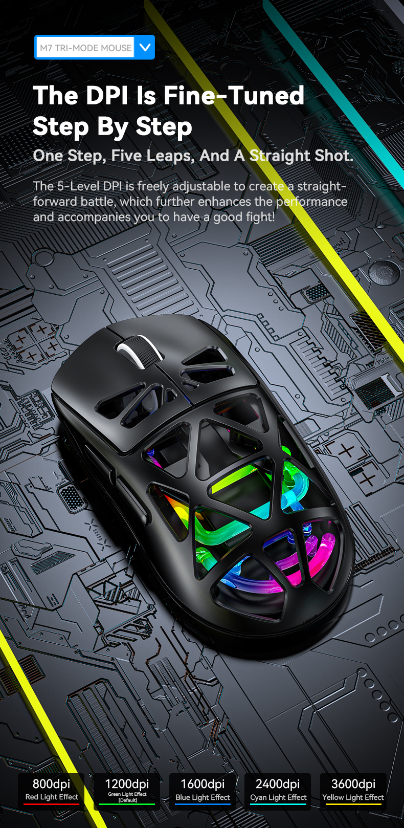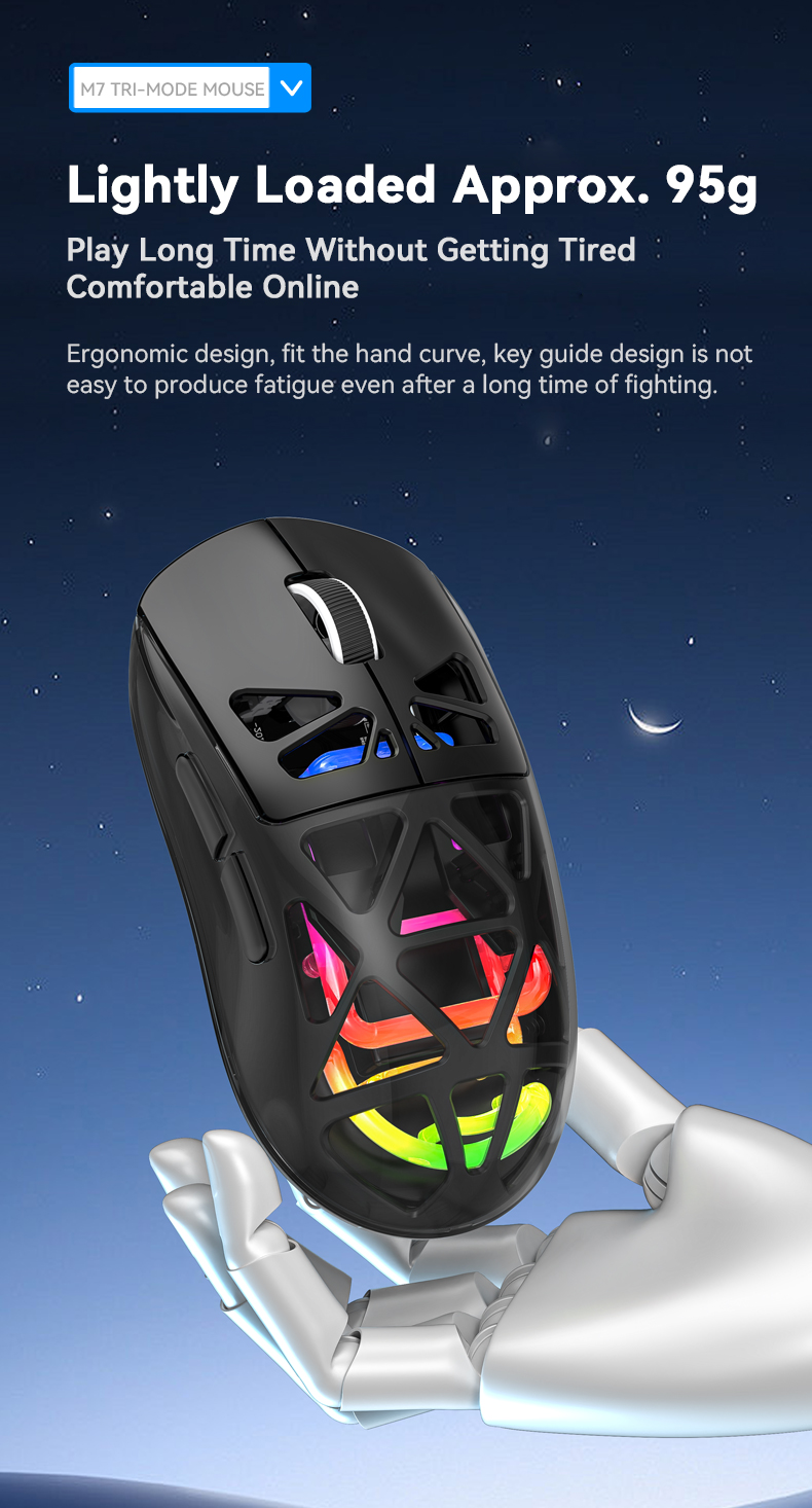 • iCAN Black M7 Tri-Mode 2.4G/Bluetooth/USB Gaming Mouse, 3600 DPI