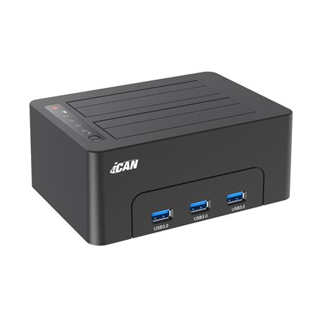 iCAN K3082H 2.5'' and 3.5'' USB3.0 Dual Bay Docking with 3 Ports USB3.0 HUB and Offline Clone Function