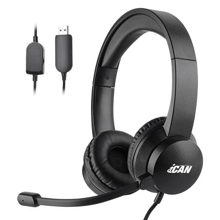 iCAN H12E Office Headset, Call Center Headset PC Headphones USB Wired with in-Line Control Mute & Retractable Mic Business Headset for Skype Office Cell Phone Laptop
