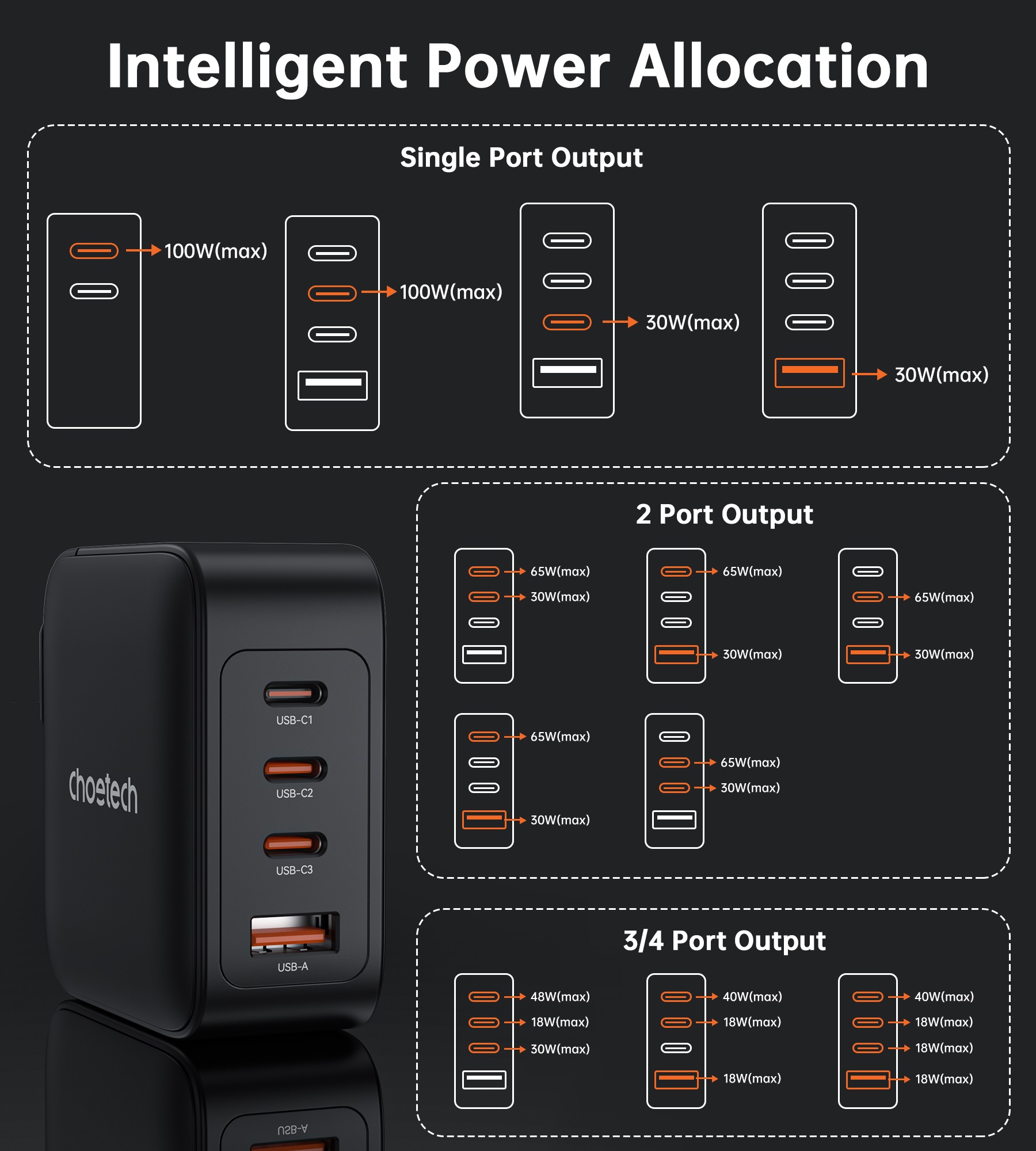 • Choetech NextGen 100W 4-Port GaN PD Wall Charger