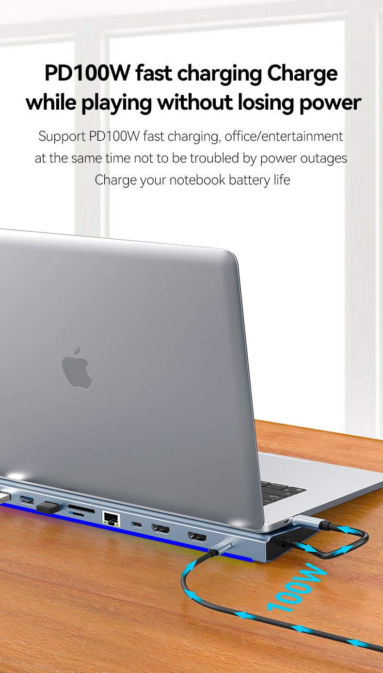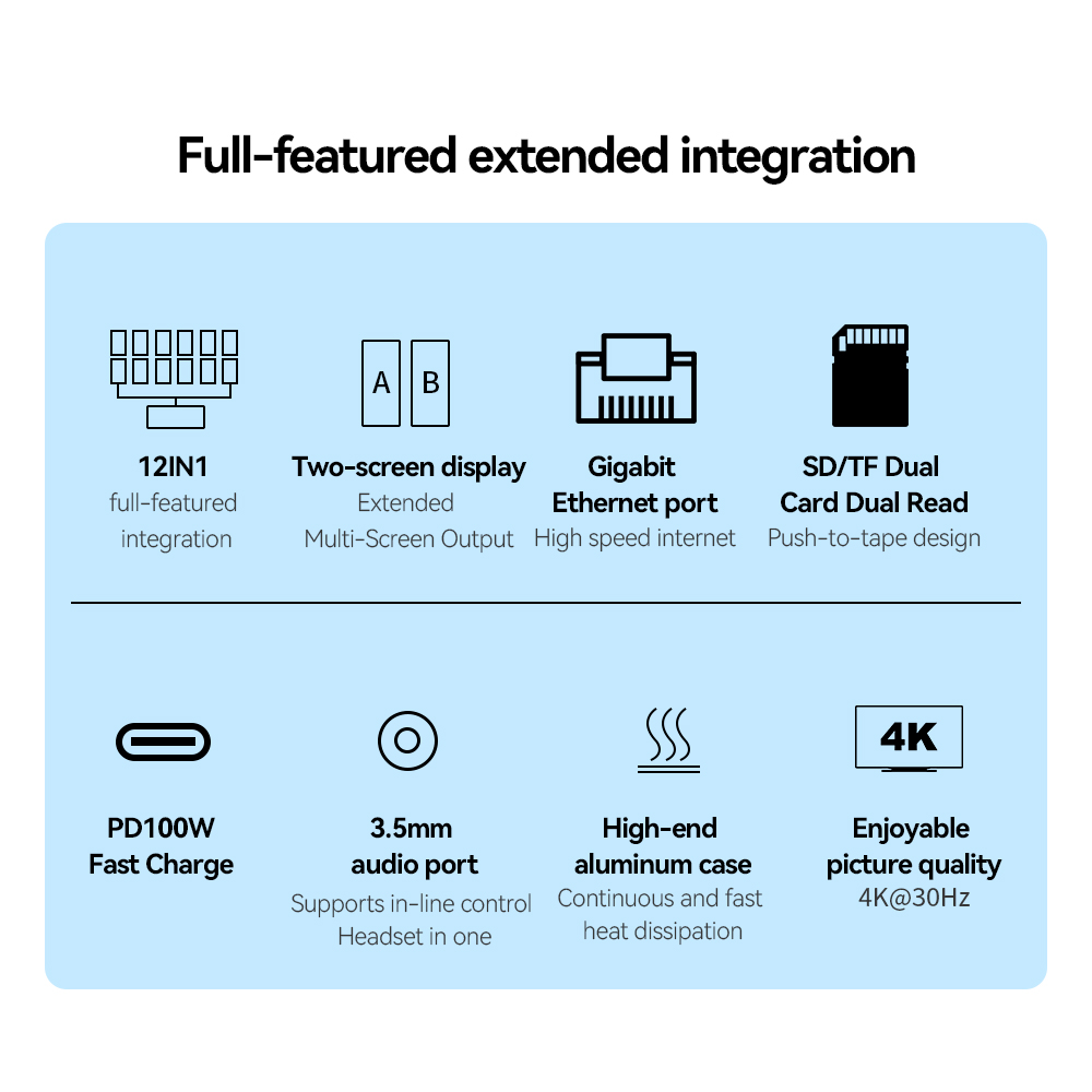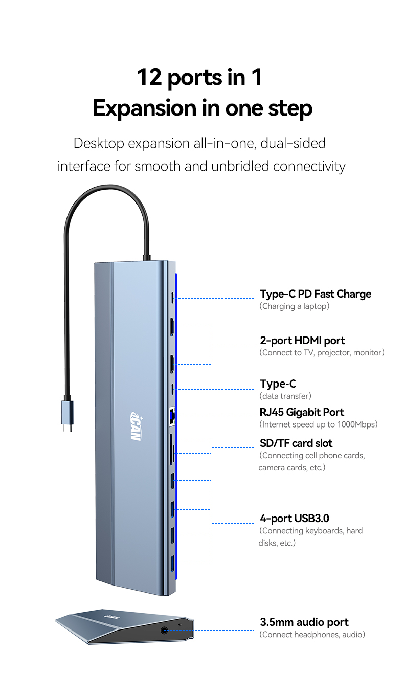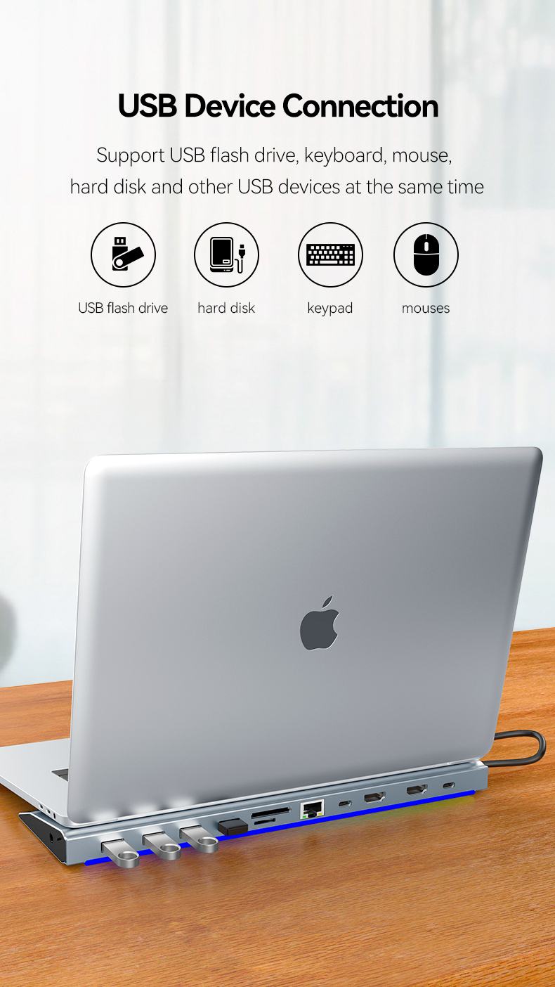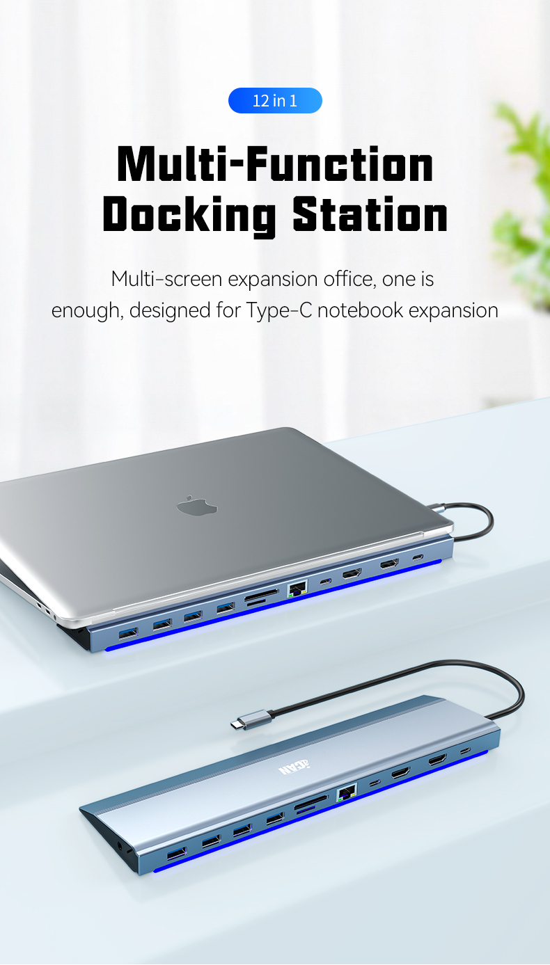 • iCAN 12-in-1 USB-C 3.1 Dual 4K HDMI Docking Station with LED Light