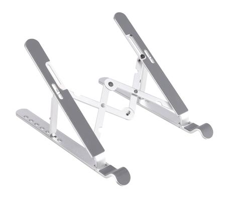 Made of high-quality aluminum alloy, the iCAN Portable 7-Level Adjustable Laptop Riser features a sleek surface and elegant appearance. Capable of firmly holding most 11”-17” laptops and tablets. With a storage bag included, the riser can fold easily for storage or transport. 7 levels of height adjustment provide optimal viewing and a comfortable working angle. The open design offers maximum airflow for heat dissipation so devices maintain cool operation. Soft silicone pads keep the device in place during use and protect surfaces from scratches.