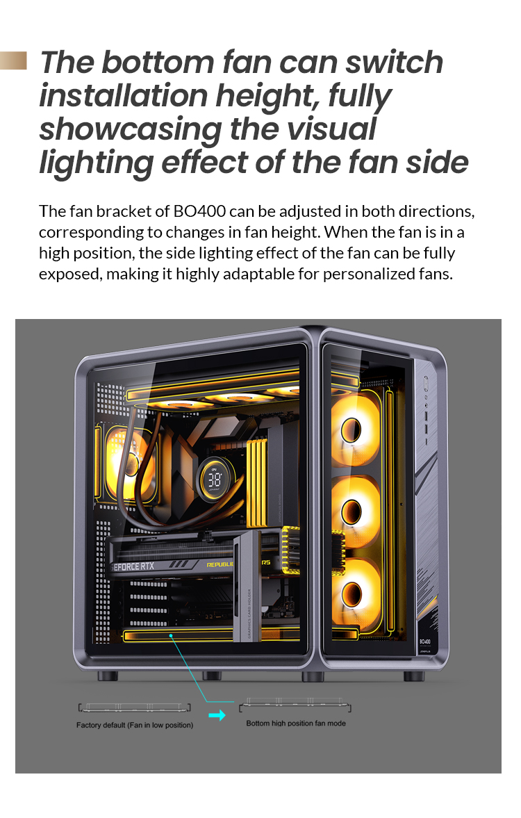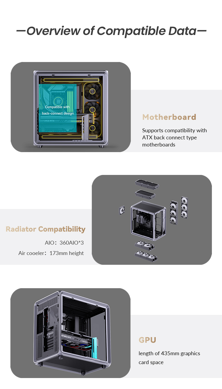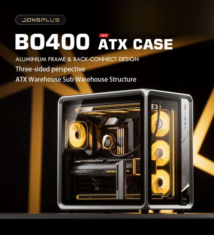 New JONSBO BO400 ATX Computer Case, Aluminum Frame, SP Back-Connect MB,High Comp PC Case,SP GPU 435mm/PSU 200mm/AIO360x3,3 Sided View,Top Front Interchangeable Glass/Mesh Desktop Display Chassis, Gray