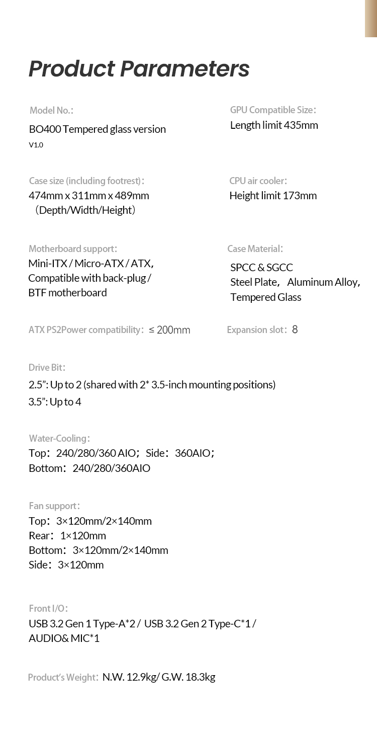 • JONSBO BO400 ATX Computer Case, Aluminum Frame,High Comp PC Case