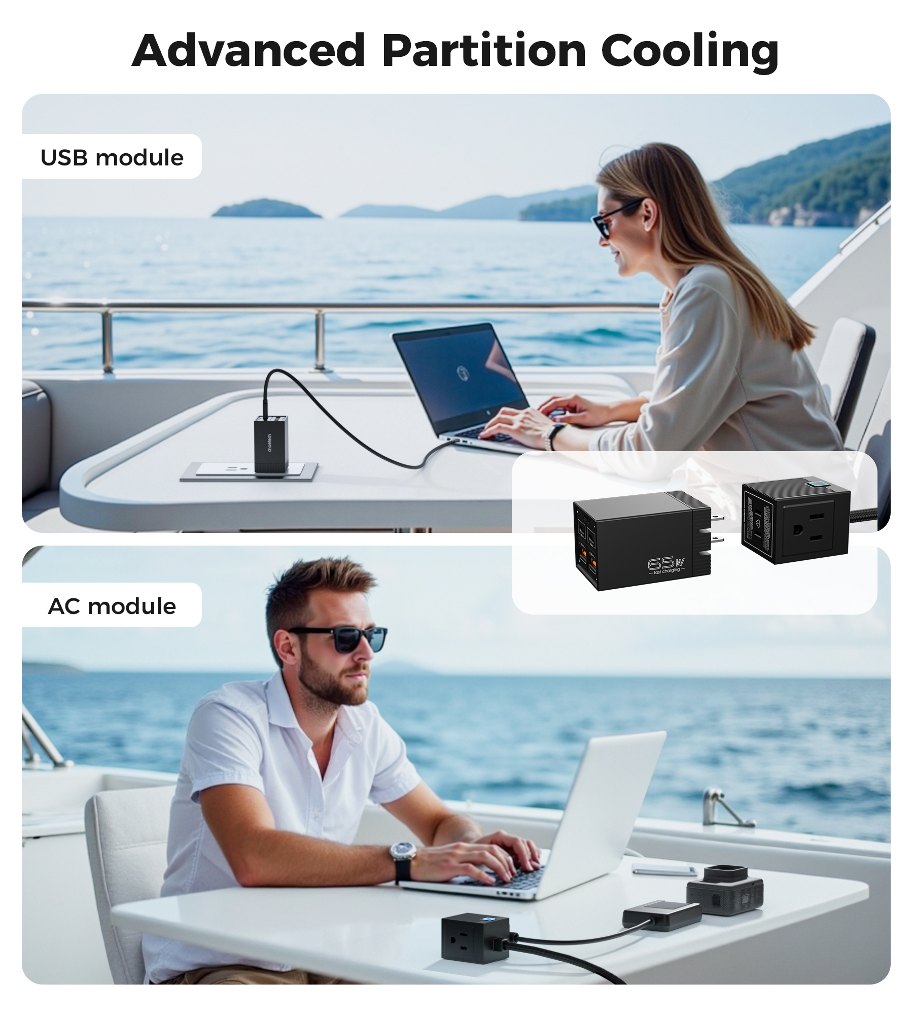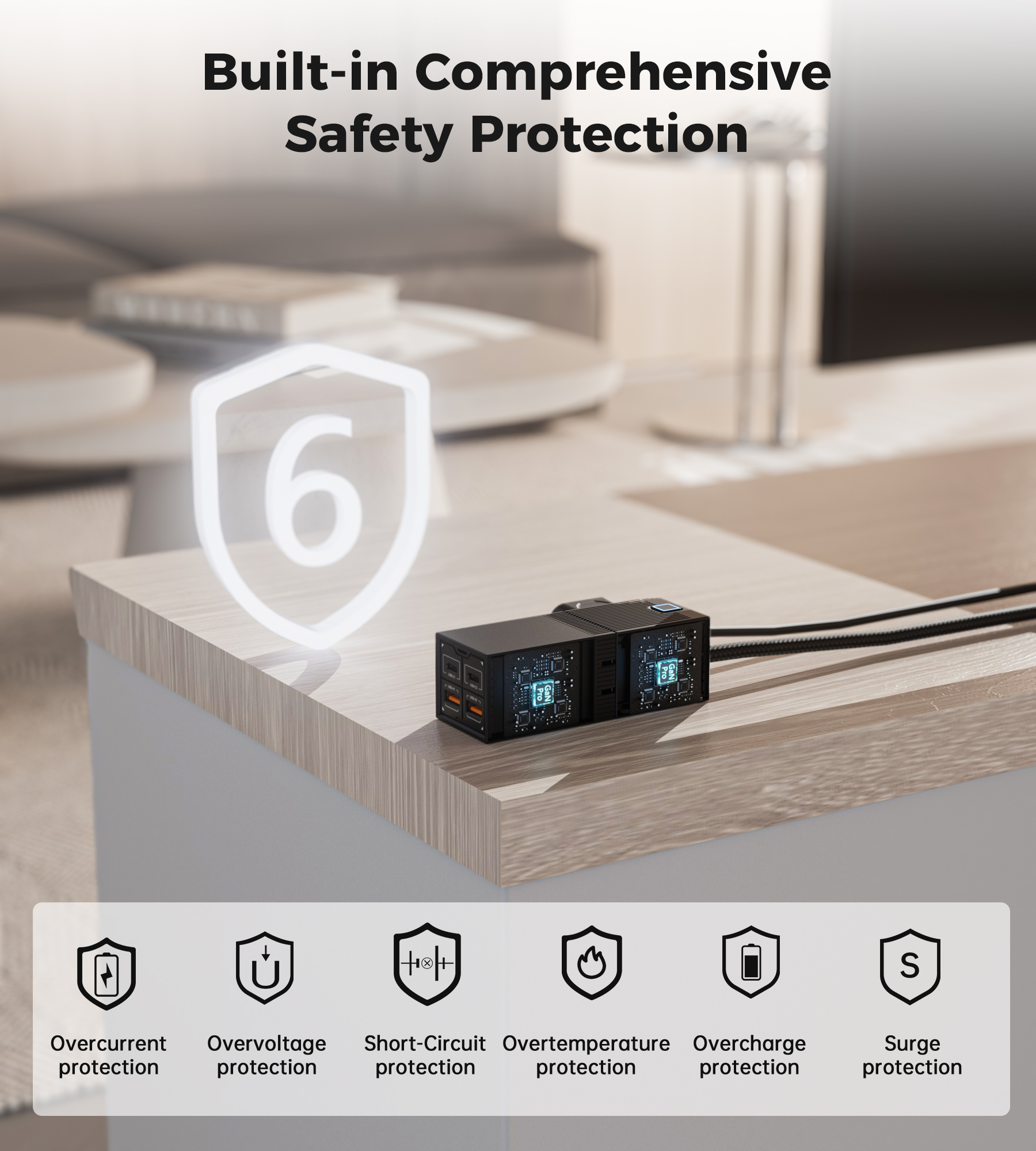 • Choetech 2 Outlets 4 USB 65W Detachable Power Strip with 5ft Cord(Open Box)