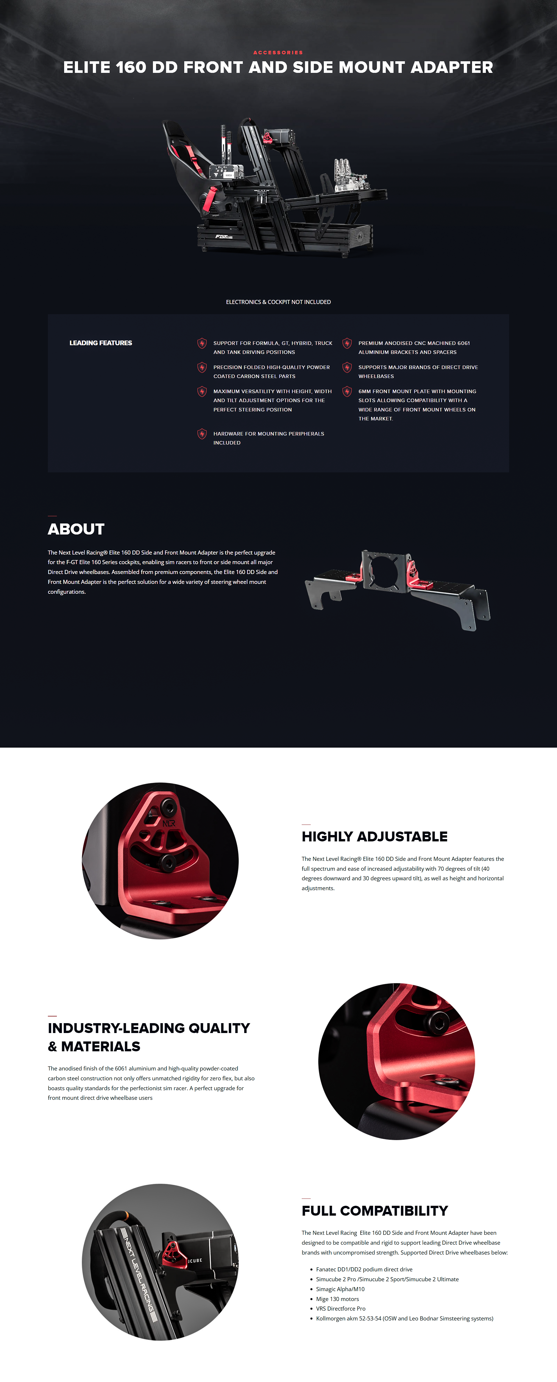 • NEXT LEVEL RACING F-GT Elite 160 DD Side &  Front Mount Adapter