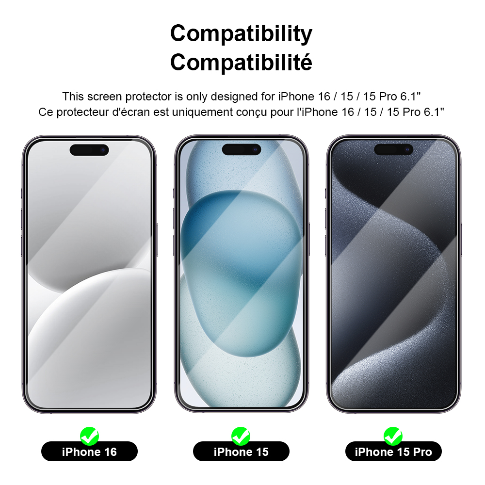 • VMAX 0.33MM Full Cover Tempered Glass Screen Protector for iPhone 16