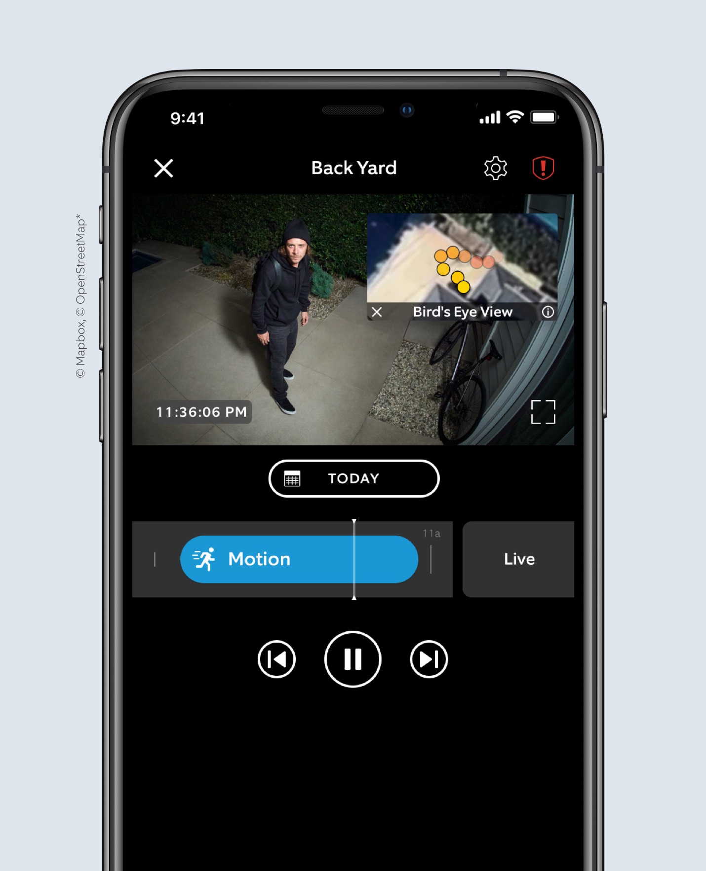 Get an aerial look at your home to monitor motion events from a new perspective.