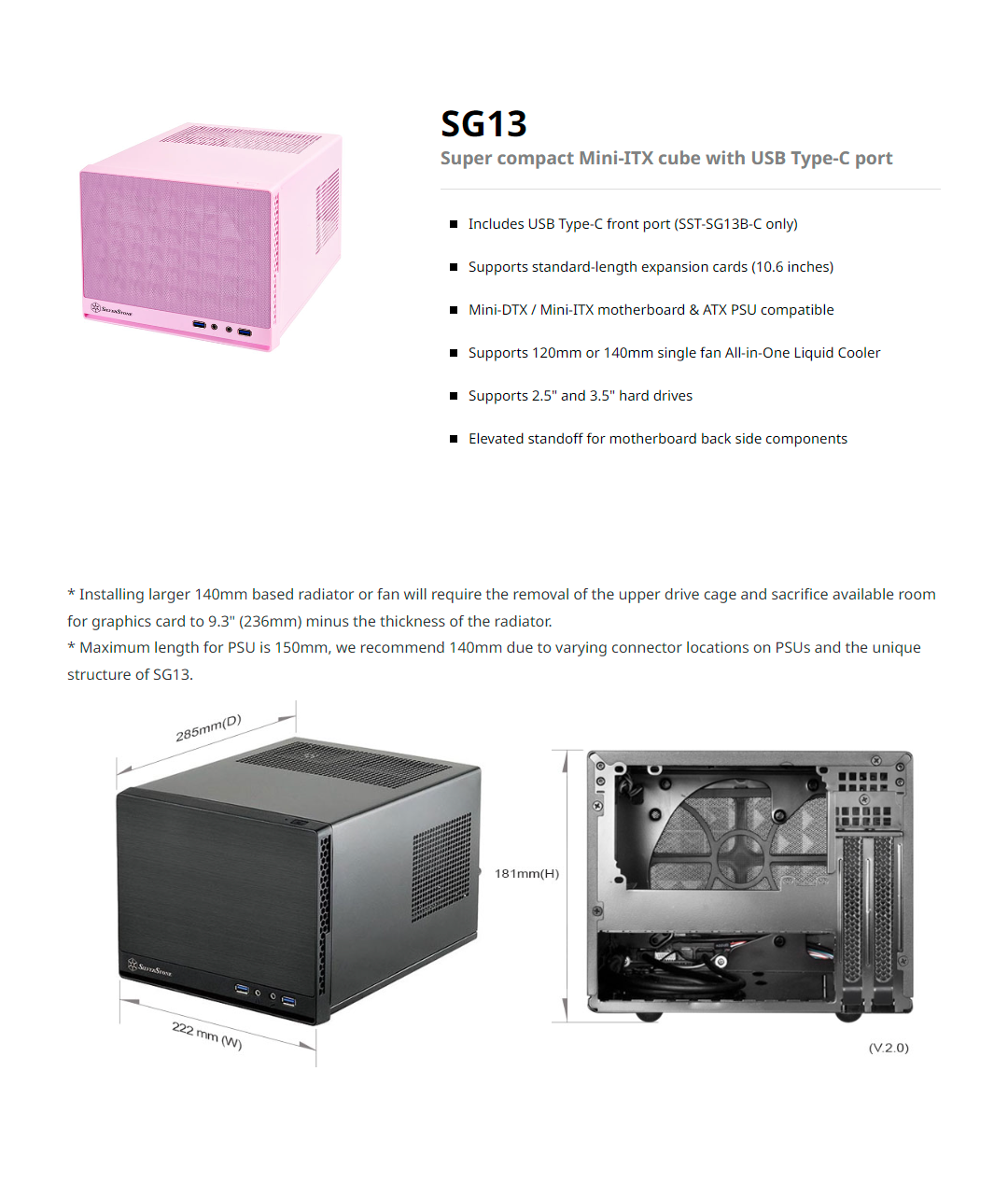 • Includes USB Type-C front port (SST-SG13B-C only)