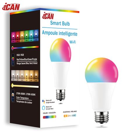 iCAN Smart Light Bulbs, A19 E26 RGBCW Color Changing LED Light Bulb, Work with Alexa and Google Assistant, Music Sync, 9W 806 LM.(Open Box)