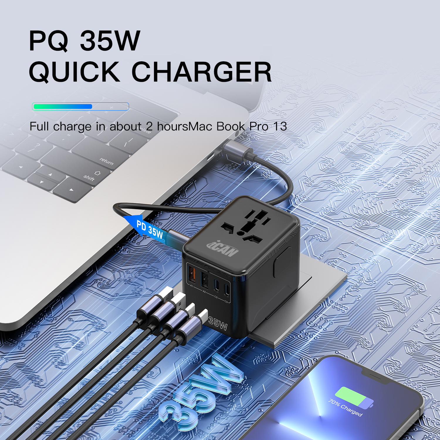 • iCAN 35W 5-Port Universal Travel Adapter with 3 USB-C and 2 USB-A(Open Box)