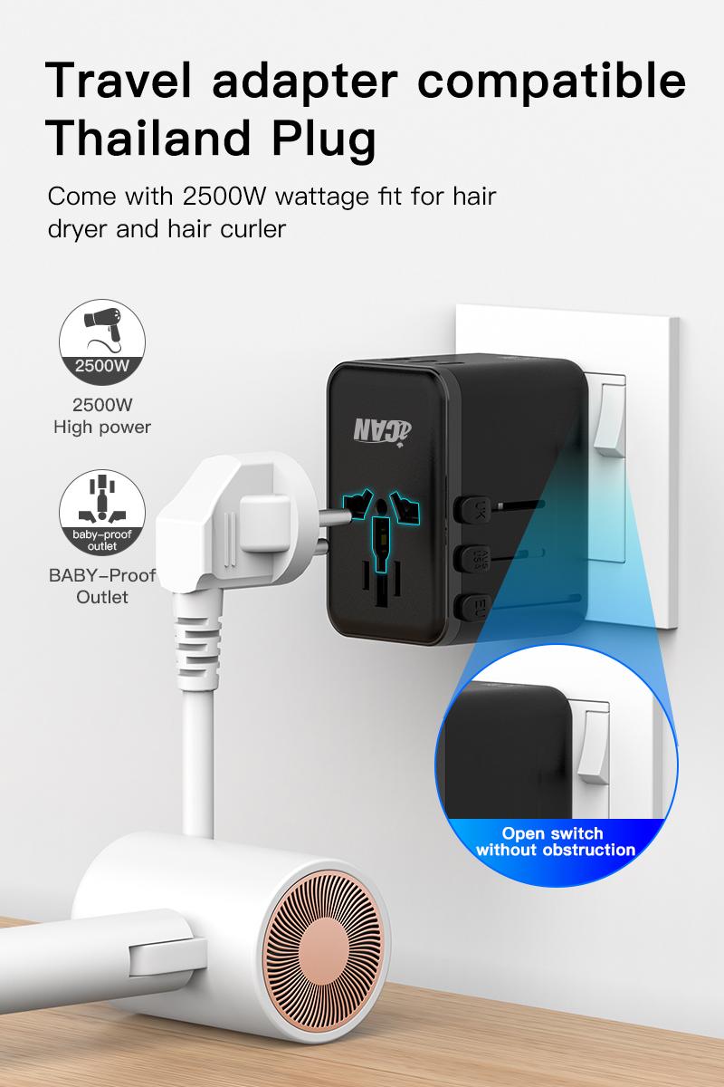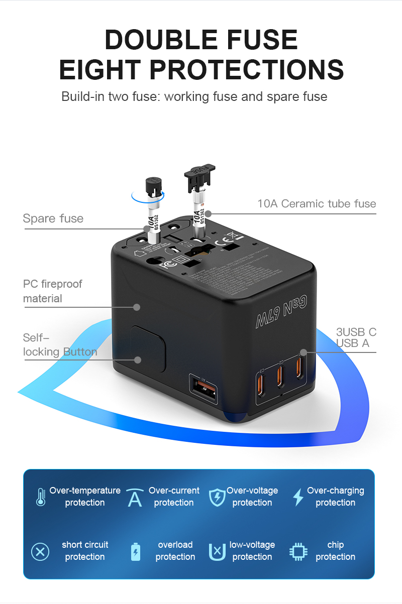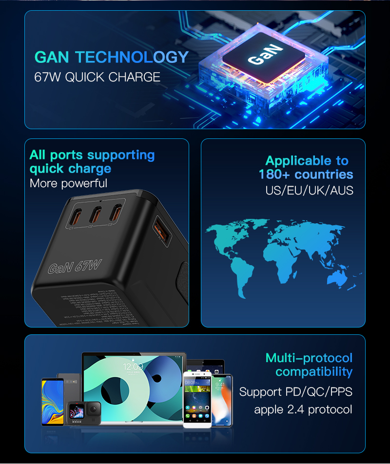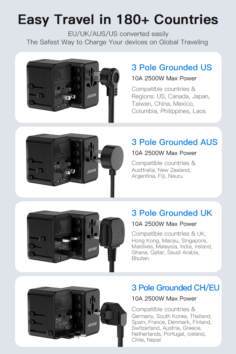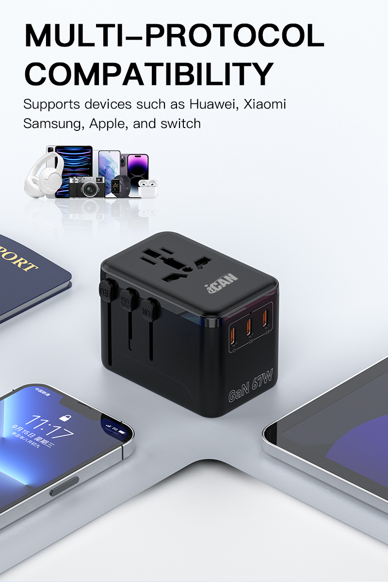 • iCAN 67W 4-Port Universal Travel Adaptor  with 3 USB-C and 1 USB-A(Open Box)