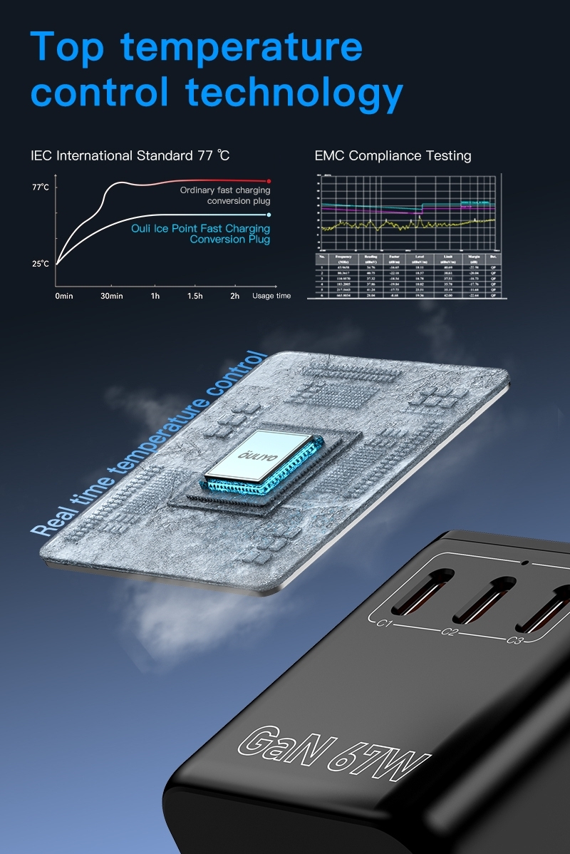 iCAN OL-A02-PQ67 67W 4-Port Universal Travel Adaptor with 3 USB-C and 1 USB-A(Open Box)