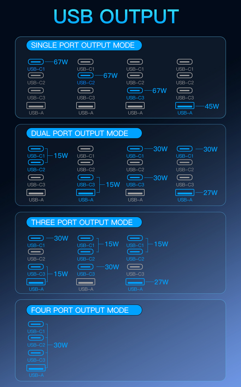 iCAN 67W 4-Port Universal Travel Adaptor  with 3 USB-C and 1 USB-A(Open Box)