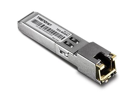 TRENDnet's 1000BASE-T RJ-45 Copper SFP Module, model TEG-MGBRJ, converts a standard SFP slot into a RJ-45 gigabit port for additional copper connectivity. This SFP module works with standard SFP slots commonly found in network switches and fiber media converters. Save on equipment costs by repurposing a switch's unused SFP slots for copper connectivity.