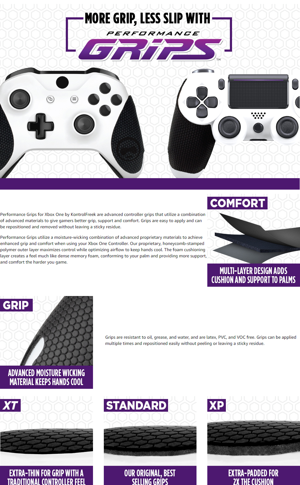 • ERFORMANCE GRIPS - are advanced controller grips that utilize a combination of advanced materials that give gamers better grip, support and comfort