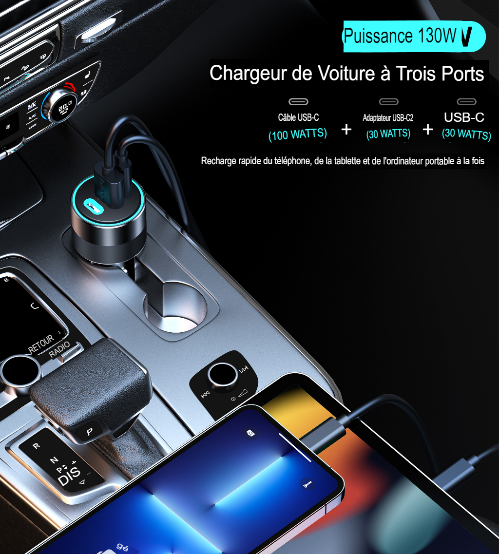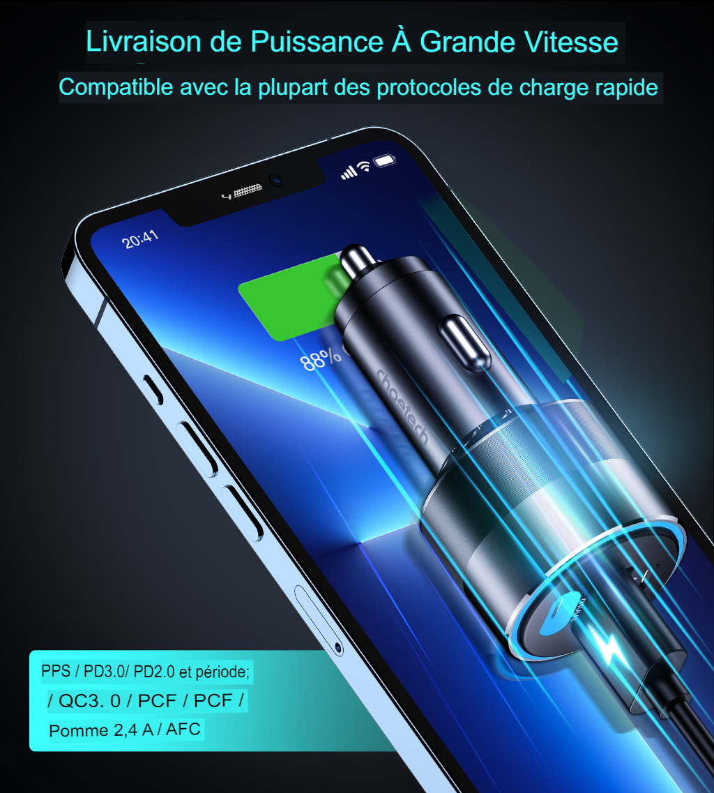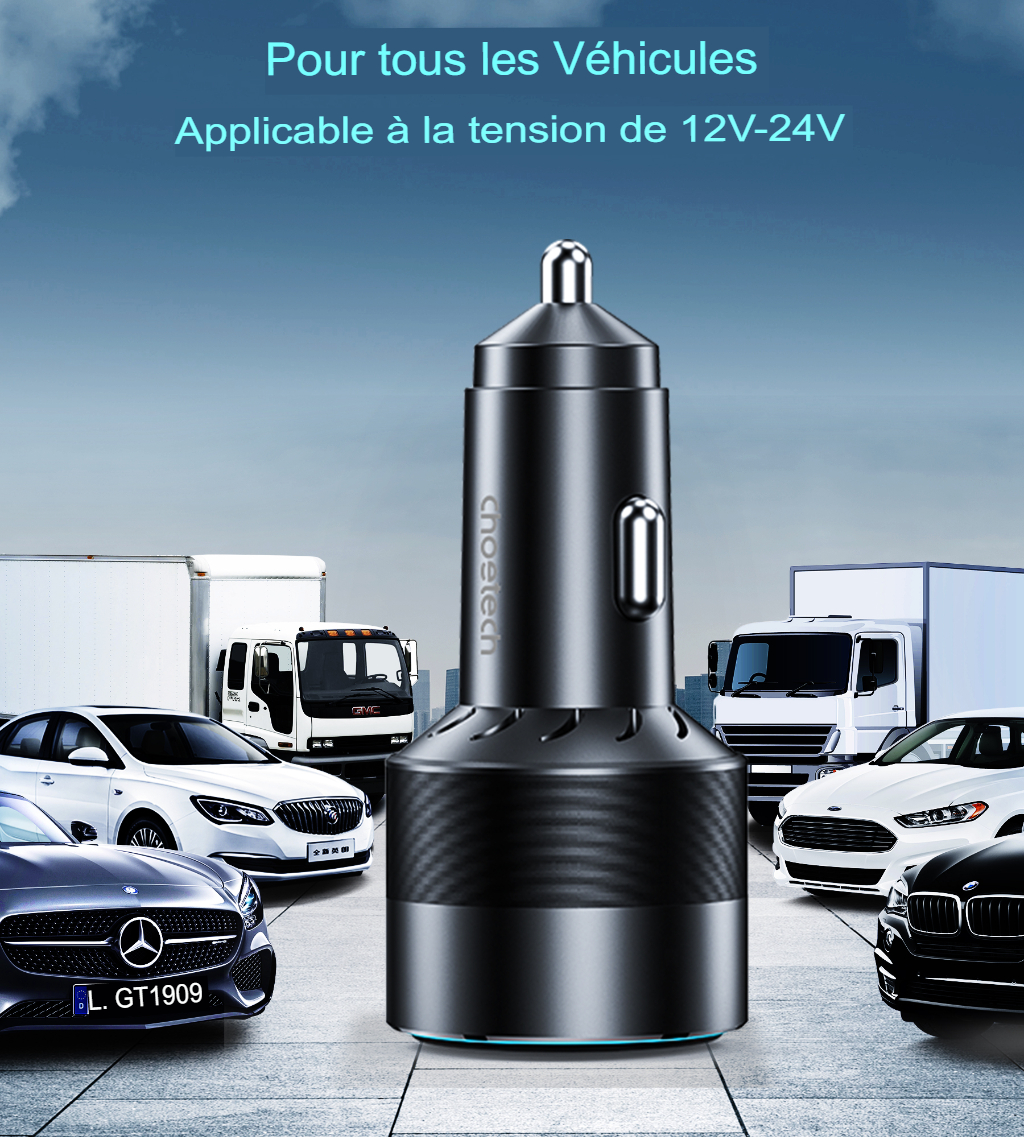 • Choetech Chargeur de voiture rapide à triple port 130 W(Open Box)