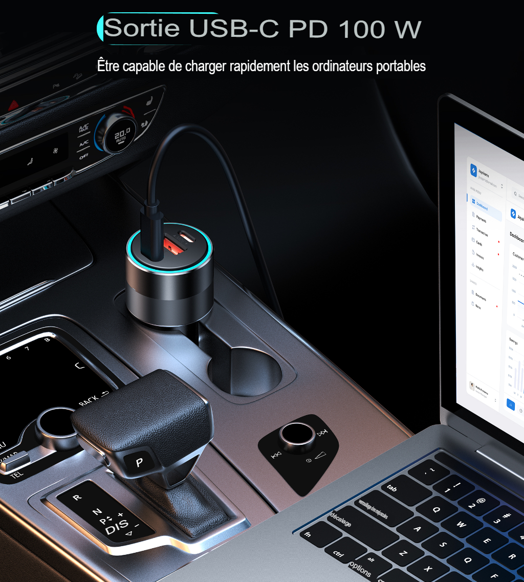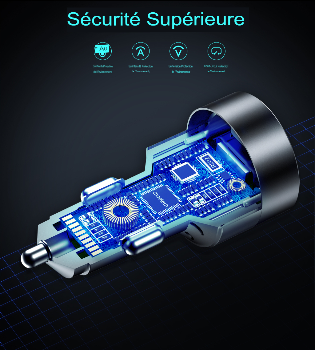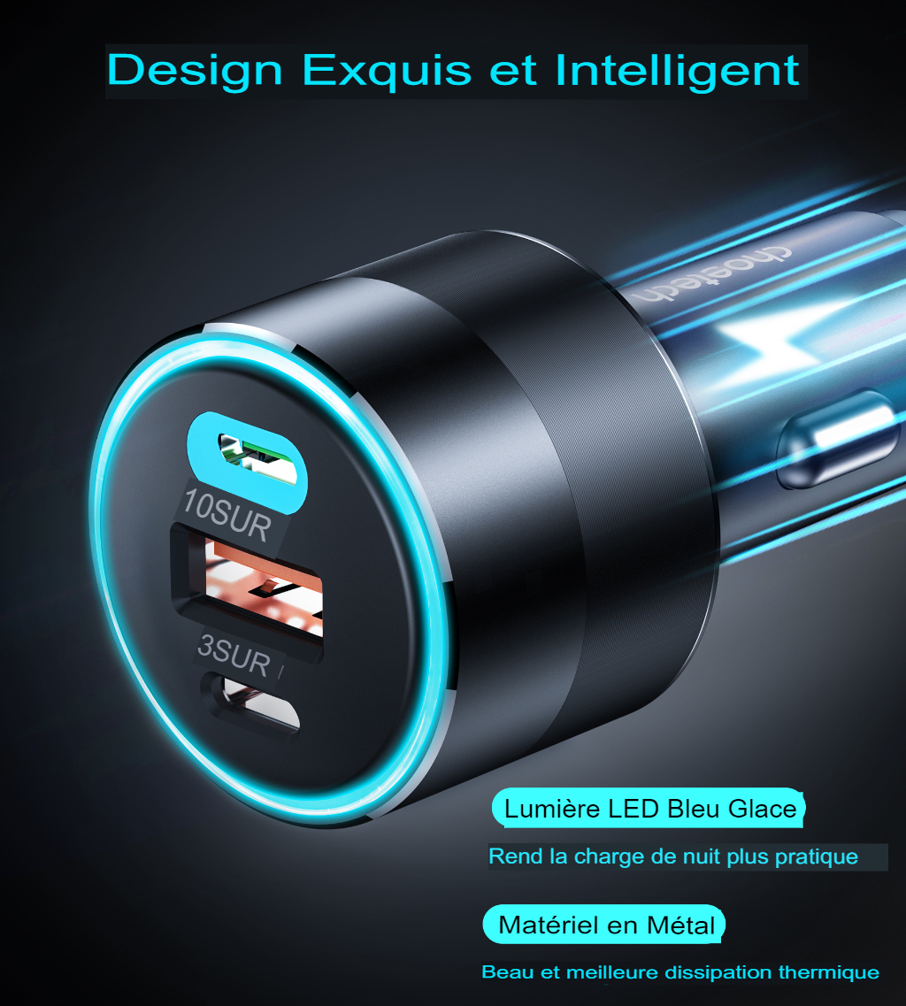 • Choetech Chargeur de voiture rapide à triple port 130 W(Open Box)