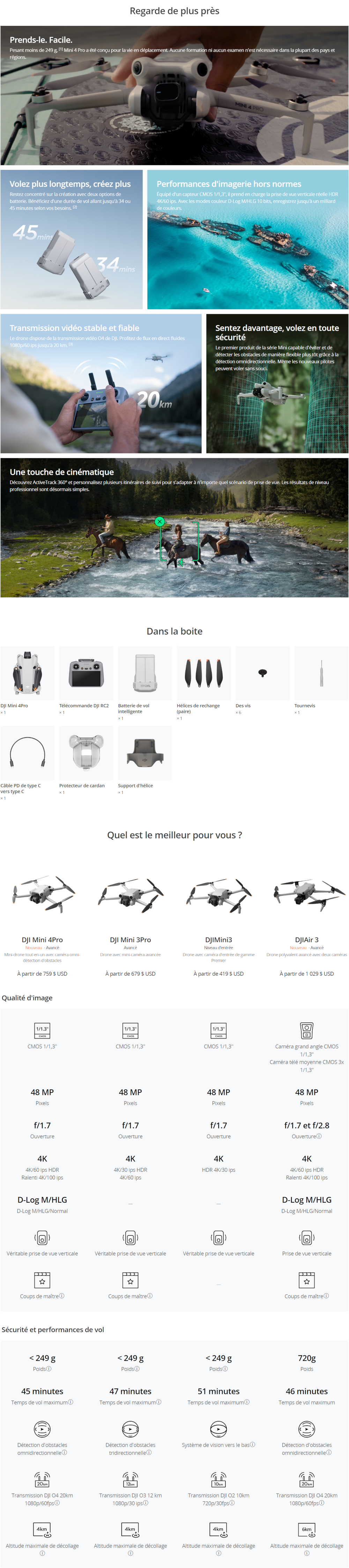 • DJI Mini 4 Pro Drone et télécommande avec écran intégré