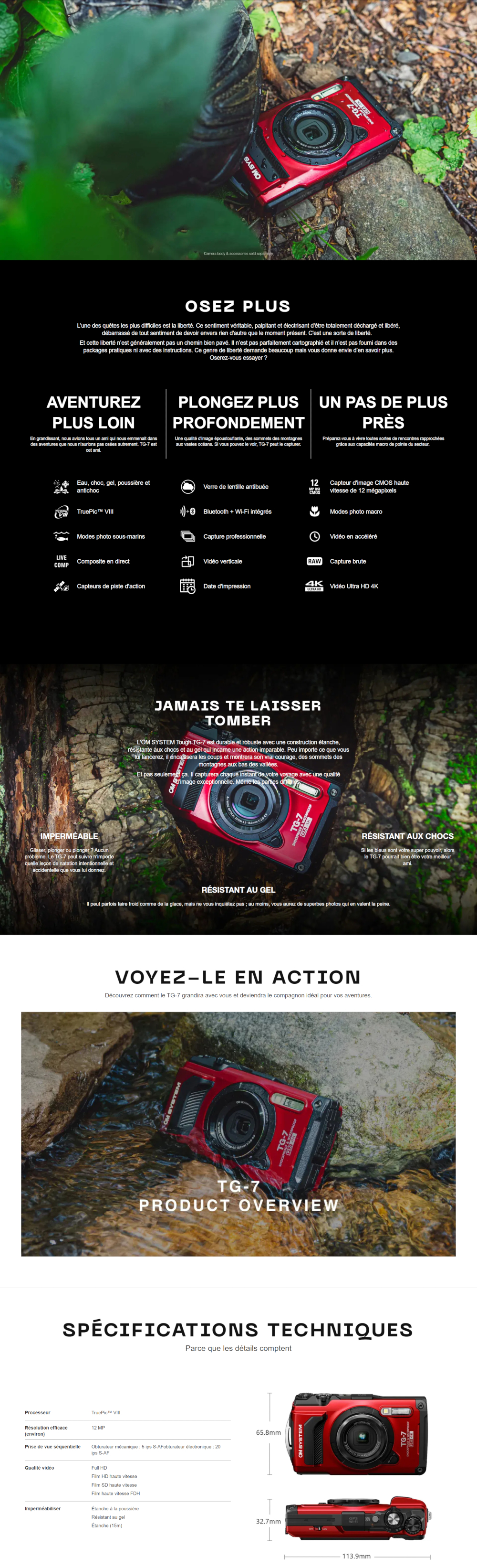 OM SYSTEM Tough TG-7 Caméra étanche compacte et robuste (Noir) | 4K30