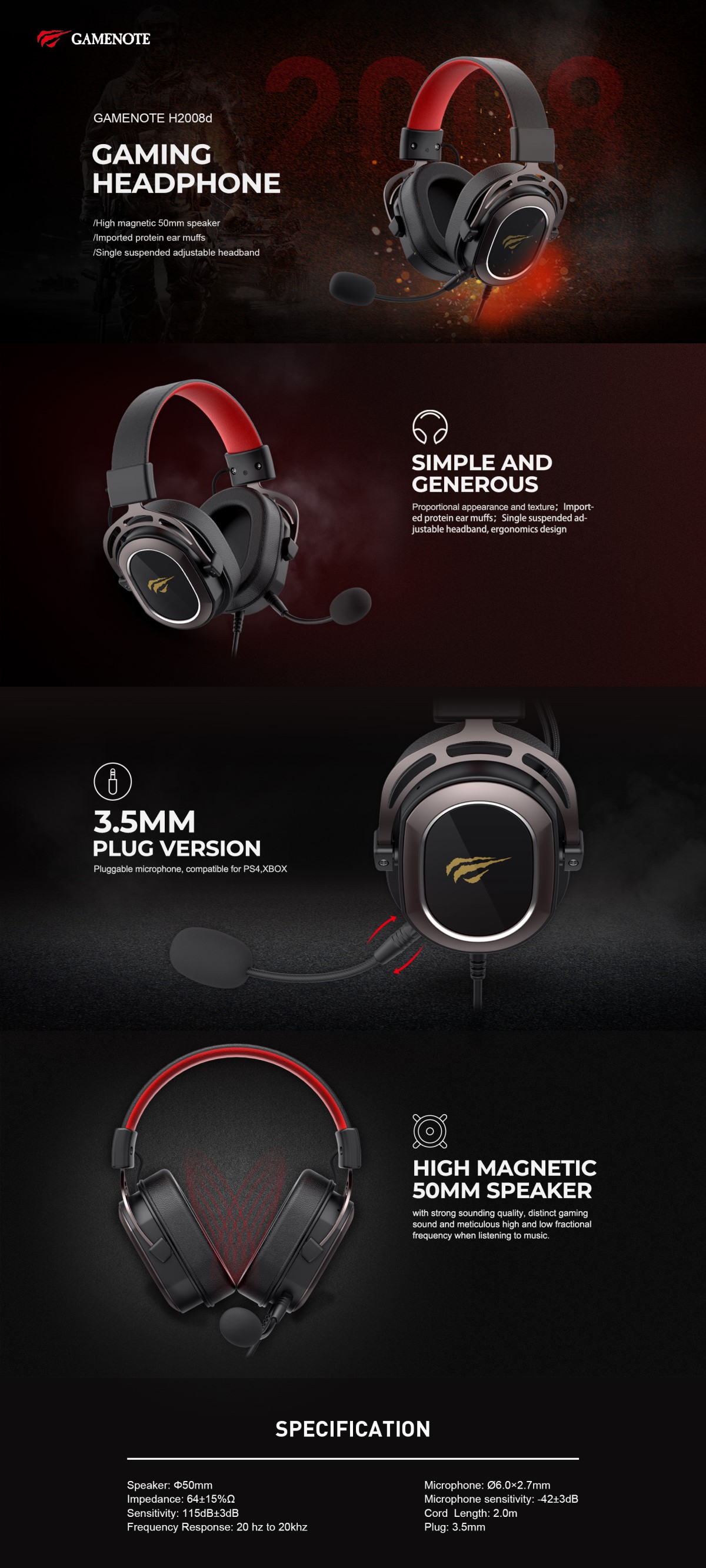 Casque de jeu filaire Havit H2008D avec prise 3,5 mm, haut-parleurs 50 mm, son surround, micro amovible HD