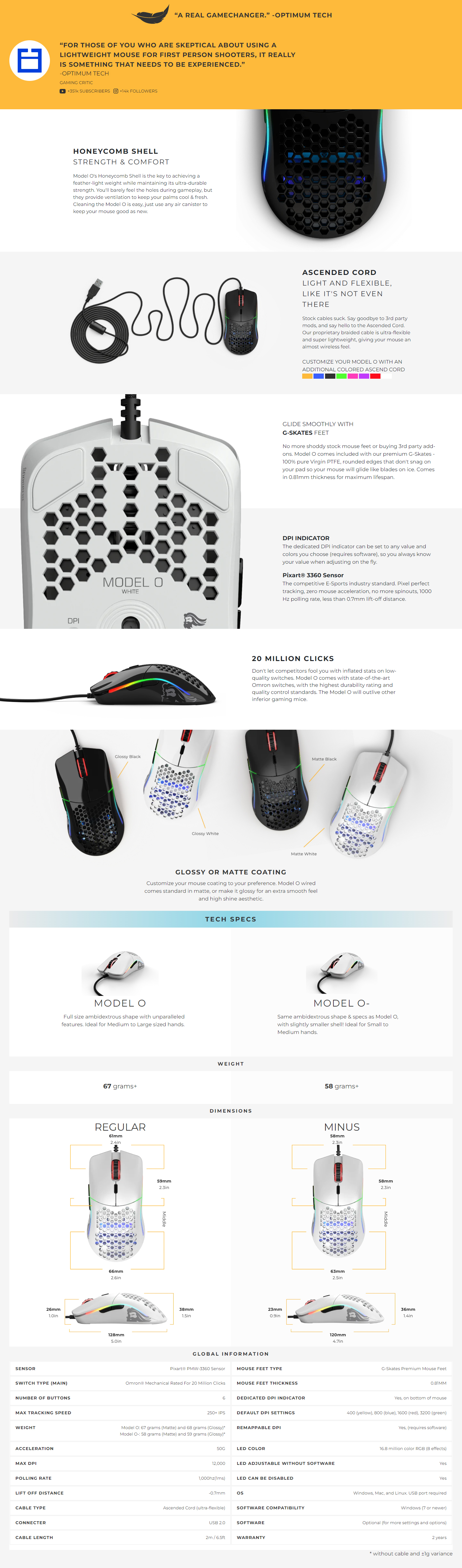 GLORIOUS (Model O) - Souris de jeu | la souris de jeu RVB la plus légère au monde | blanc mat