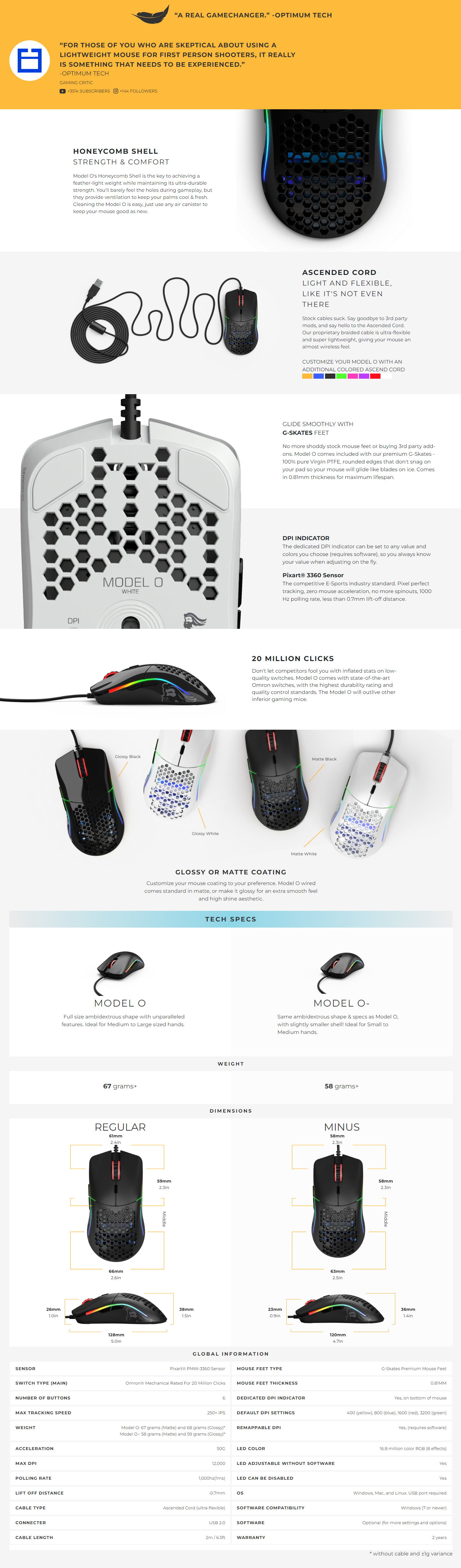 GLORIOUS (Model O) - Souris de jeu | la souris de jeu RVB la plus légère au monde | noir mat