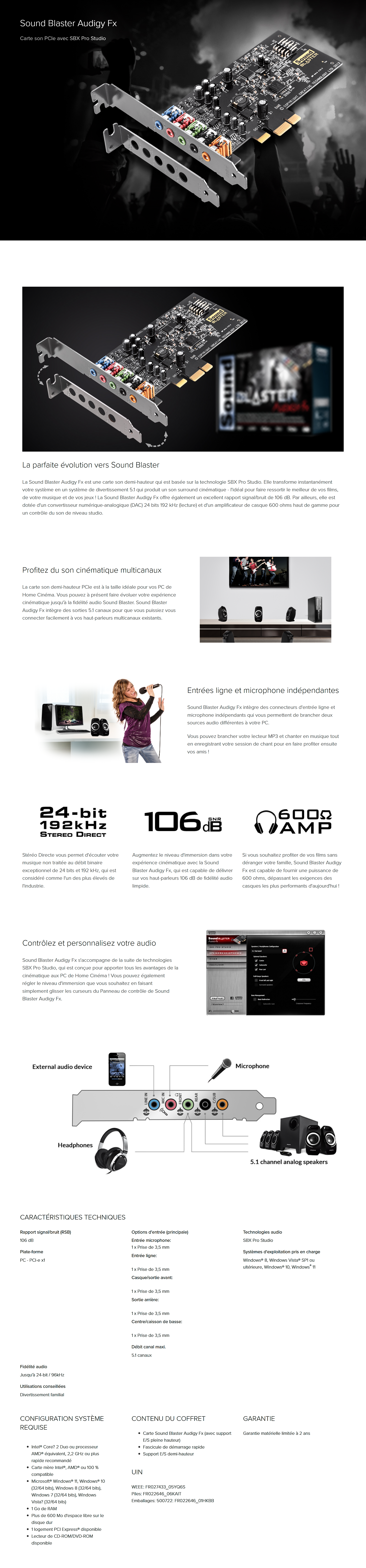 • Creative Sound Blaster Audigy FX carte son PCIe 5.1 avec SBX Pro