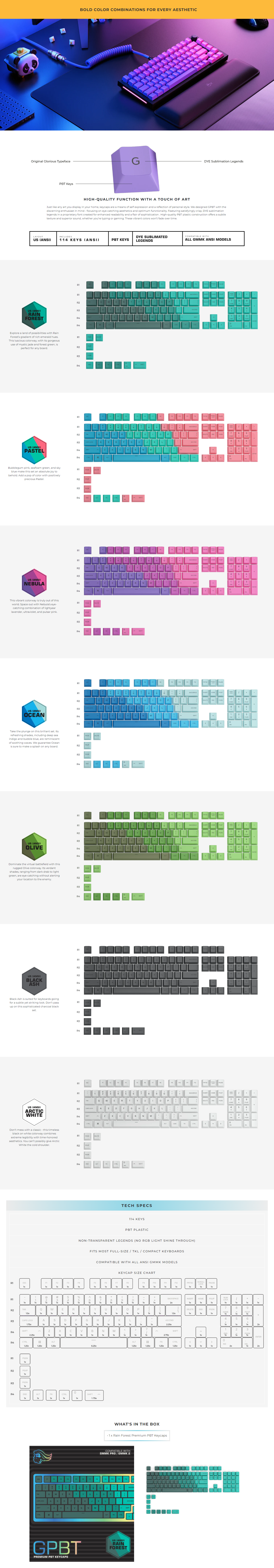Touches de clavier Glorious GPBT - Forêt tropicale (GLO-KC-GPBT-RF)(Boîte ouverte)