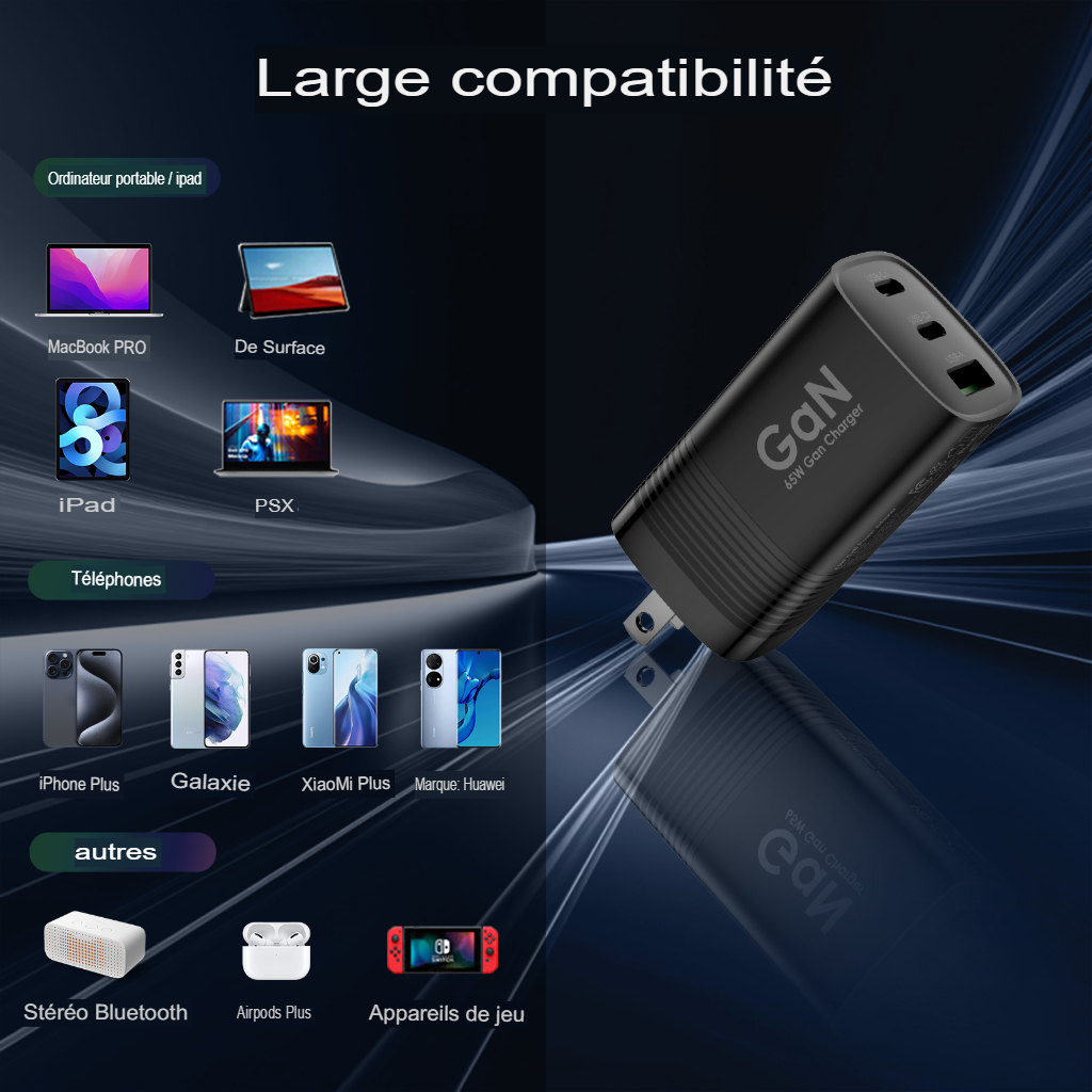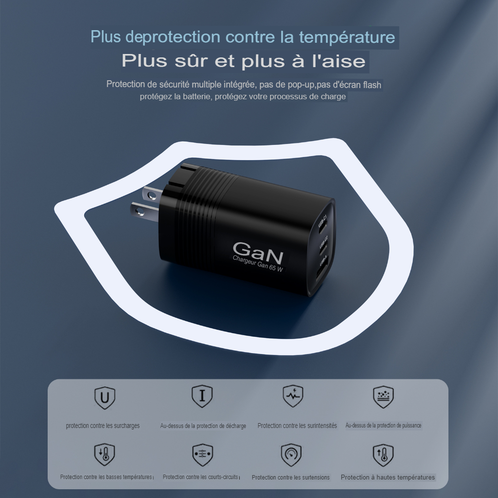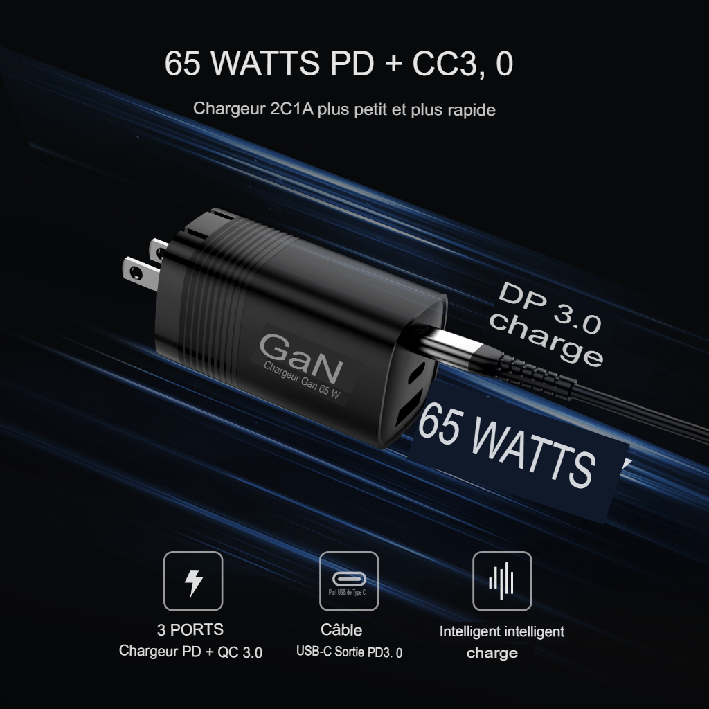 iCAN Chargeur USB GaN PD 65W à 3 ports